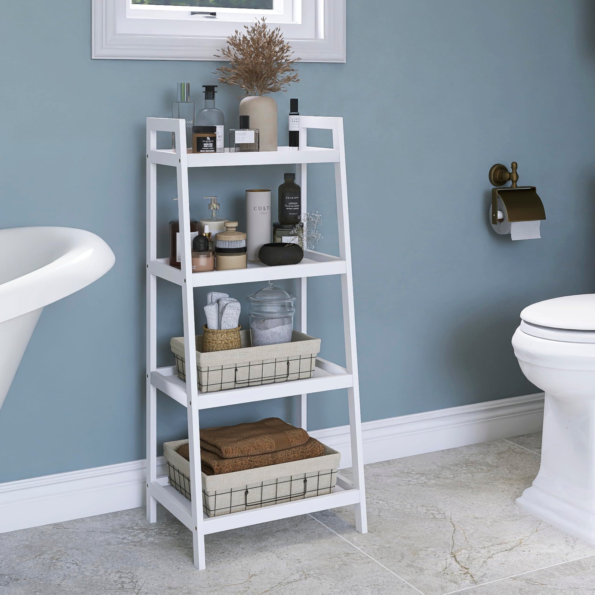 - MULTIPLE USAGE SCENARIOS - Our freestanding ladder storage shelf is easy to move, multifunction. It can be used as a bookcase in the living room, as a plant display stand on the balcony, as a towel shelf in the bathroom, as a storage organizer in the kitchen, very wide application
