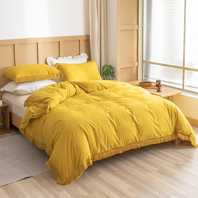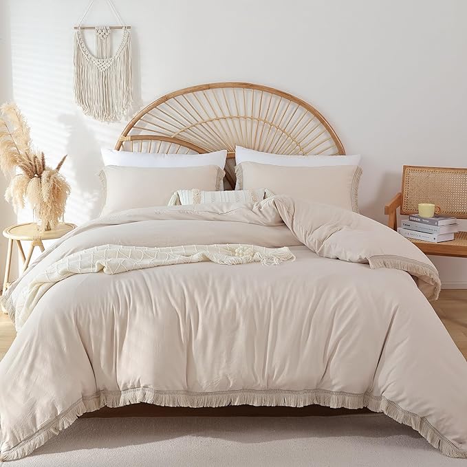 - GIFT IDEA: The bohemian jewel cozy tassel fringe bed set looks elegance and romantic. The warm tassel comforter features a simple style, which reduces your stress visually after a whole day of work and study. So this boho modern fringe tassel bedding set is a warm gift for children, friends, families or your love.