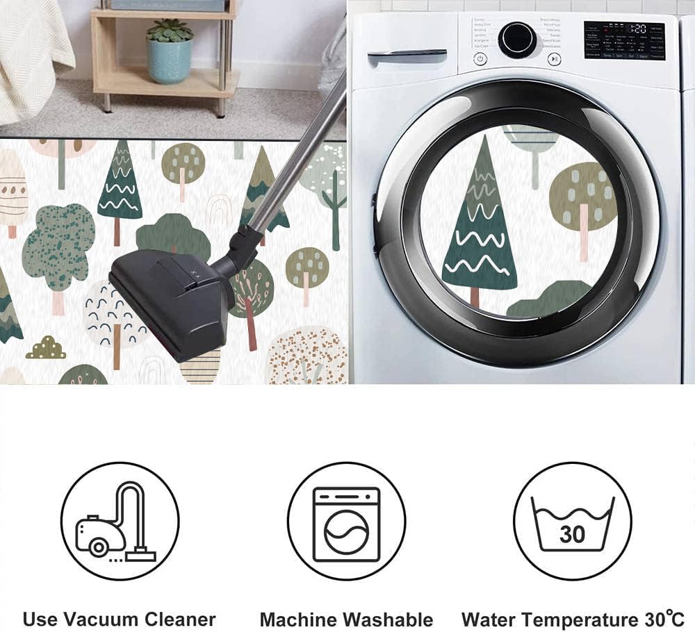 Soft Kids Play Area Rugs 3D Home Seamless Trendy Forest Texture Abstract Hand Drawn Tree Plush Rugs Non Slip Shaggy Carpets for Kids' Bedroom Classroom Playroom Nursery Décor
