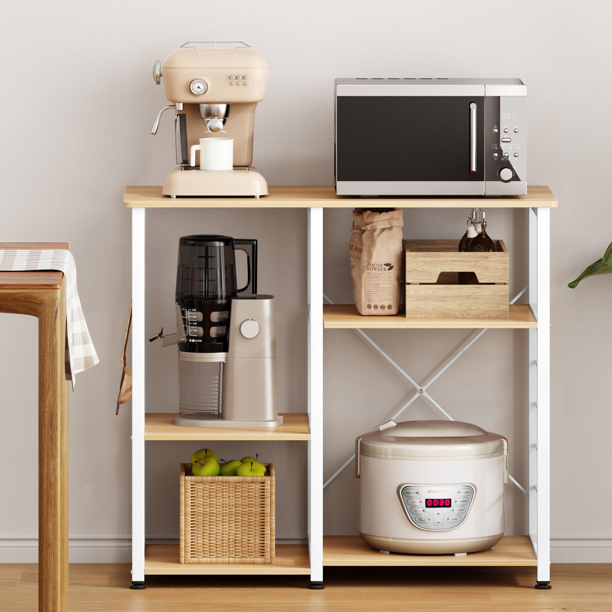 - Multifunctional Kitch Storage Shelf The kitchen baker's rack is multifunctional and can be used as a coffee bar or microwave stand. It can also be used for laundry room organization and storage, or as a cabinet rack in the bedroom, office, or living room.