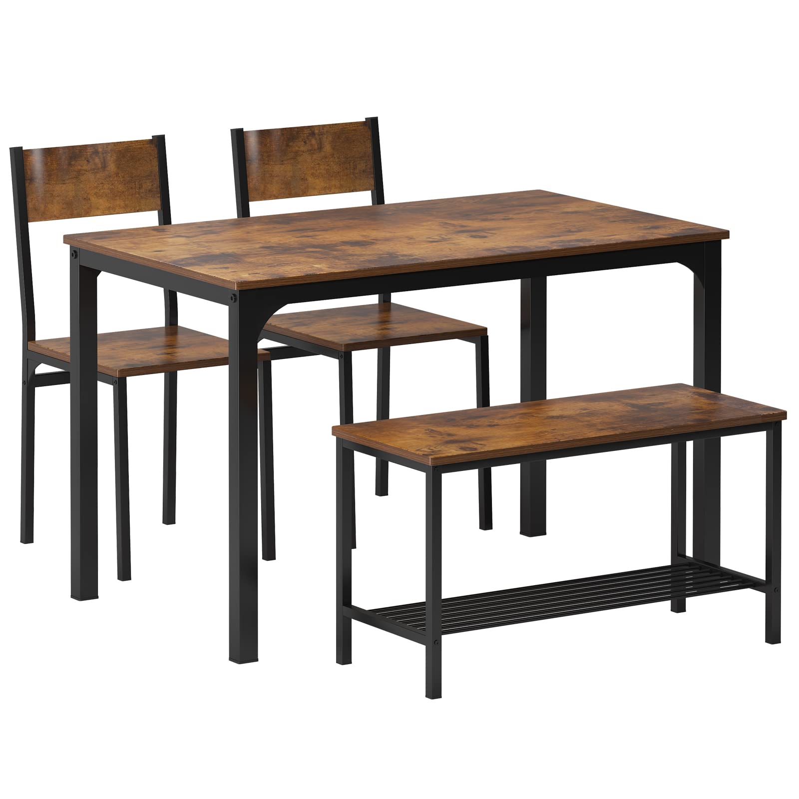 4 Piece Dining Table Set, Dining Room Set, Kitchen Dinner Table with Benches for 4