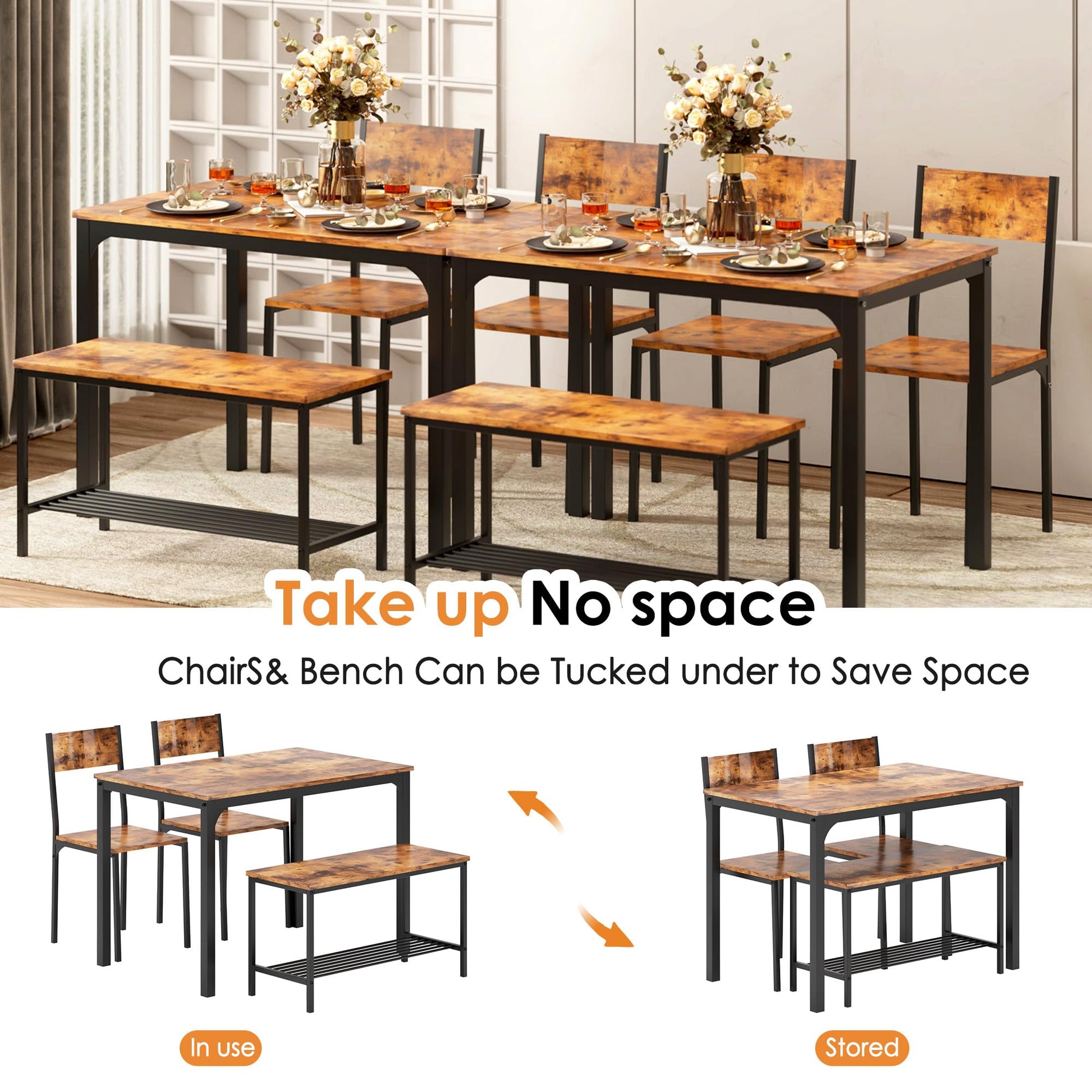 - 4 Piece Sets Design: This table set includes one table, 2 chairs and a bench. There are ample spaces beneath the table for your legs and the benches fit perfectly under the table when not in use,space saving and convenient. Perfect chance for small apartments and small spaces.