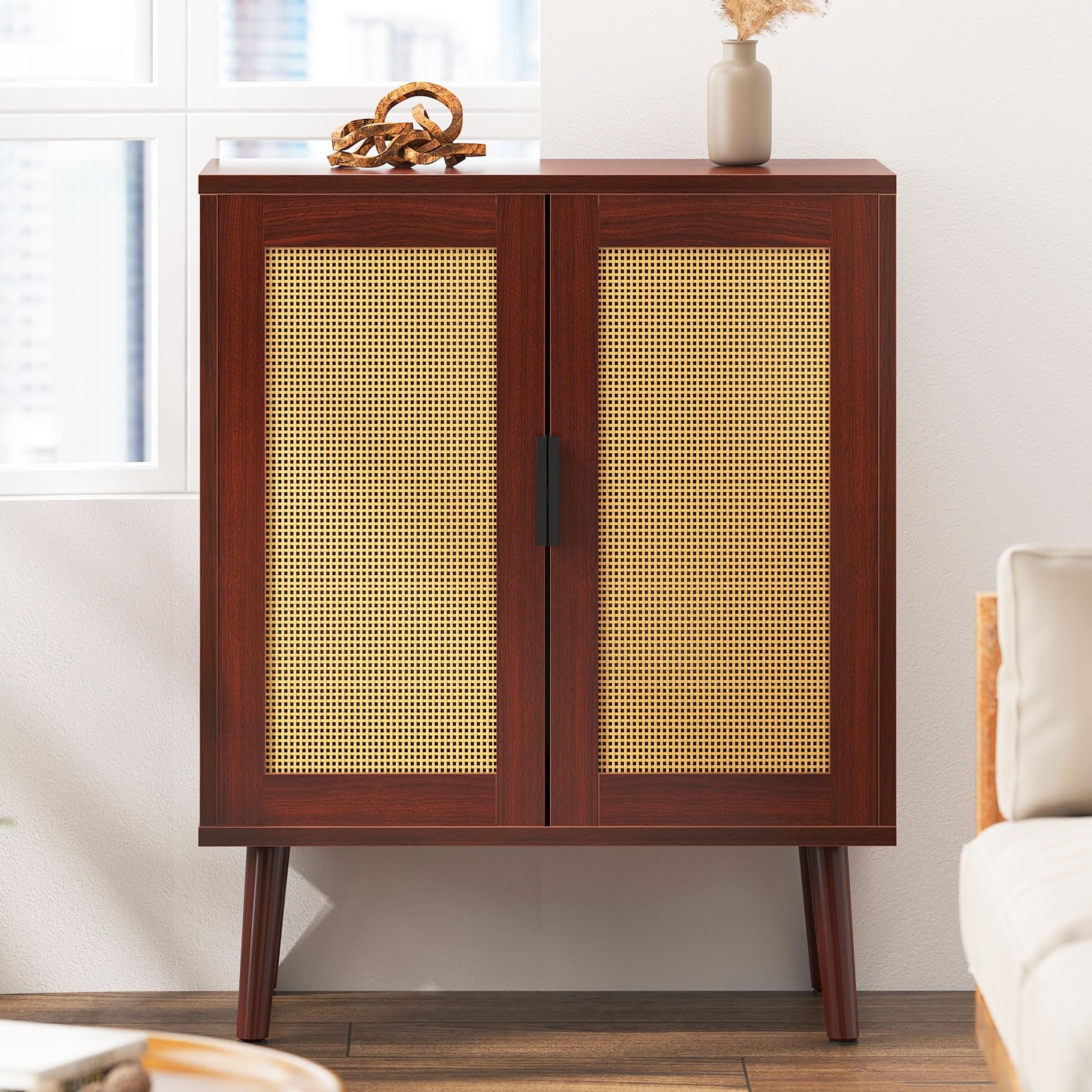 Rattan 2-Tier Home Storage Cabinet, Accent Kitchen Cabinet with Door,