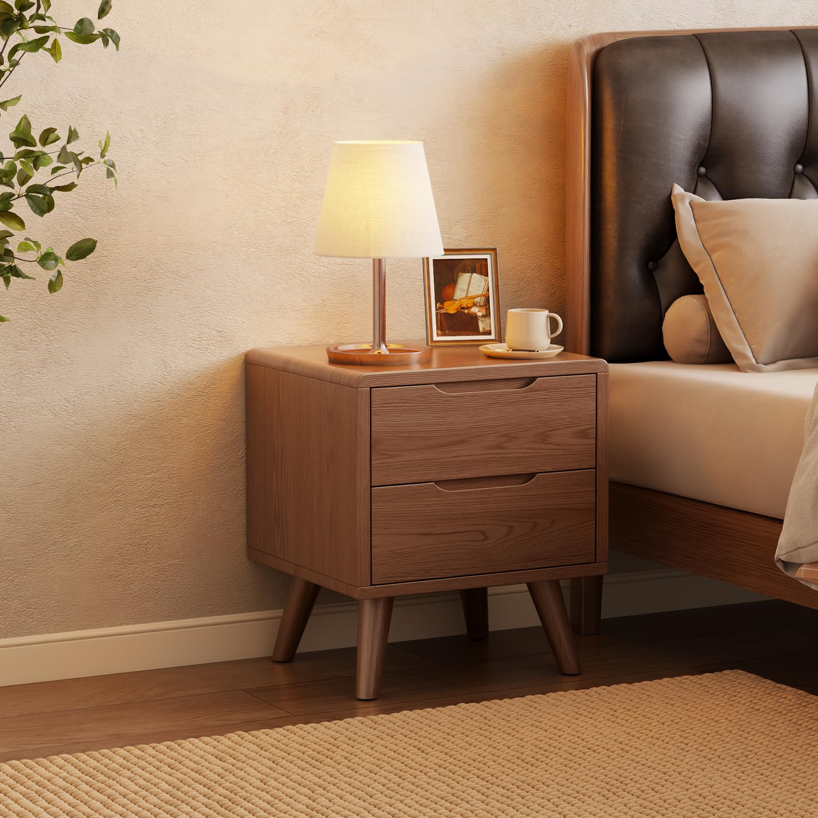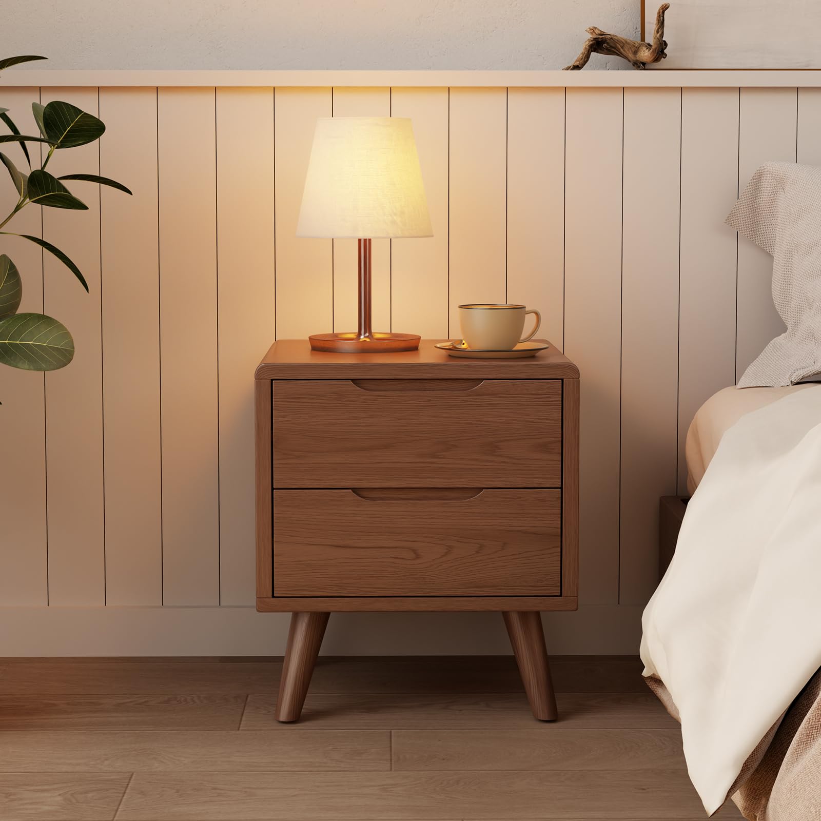 Solid Wood Nightstand with Drawers, Mid-Century Modern Nightstand, 2 Drawer Storage