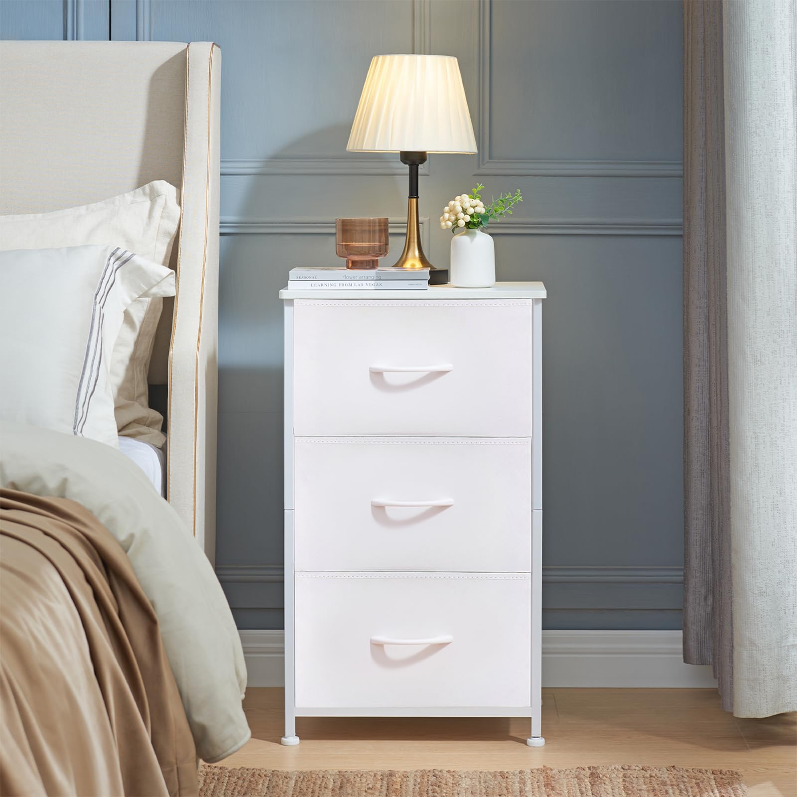 White Nightstand, 3 Drawer Dresser for Bedroom, Bedside Table Night Stand End Table