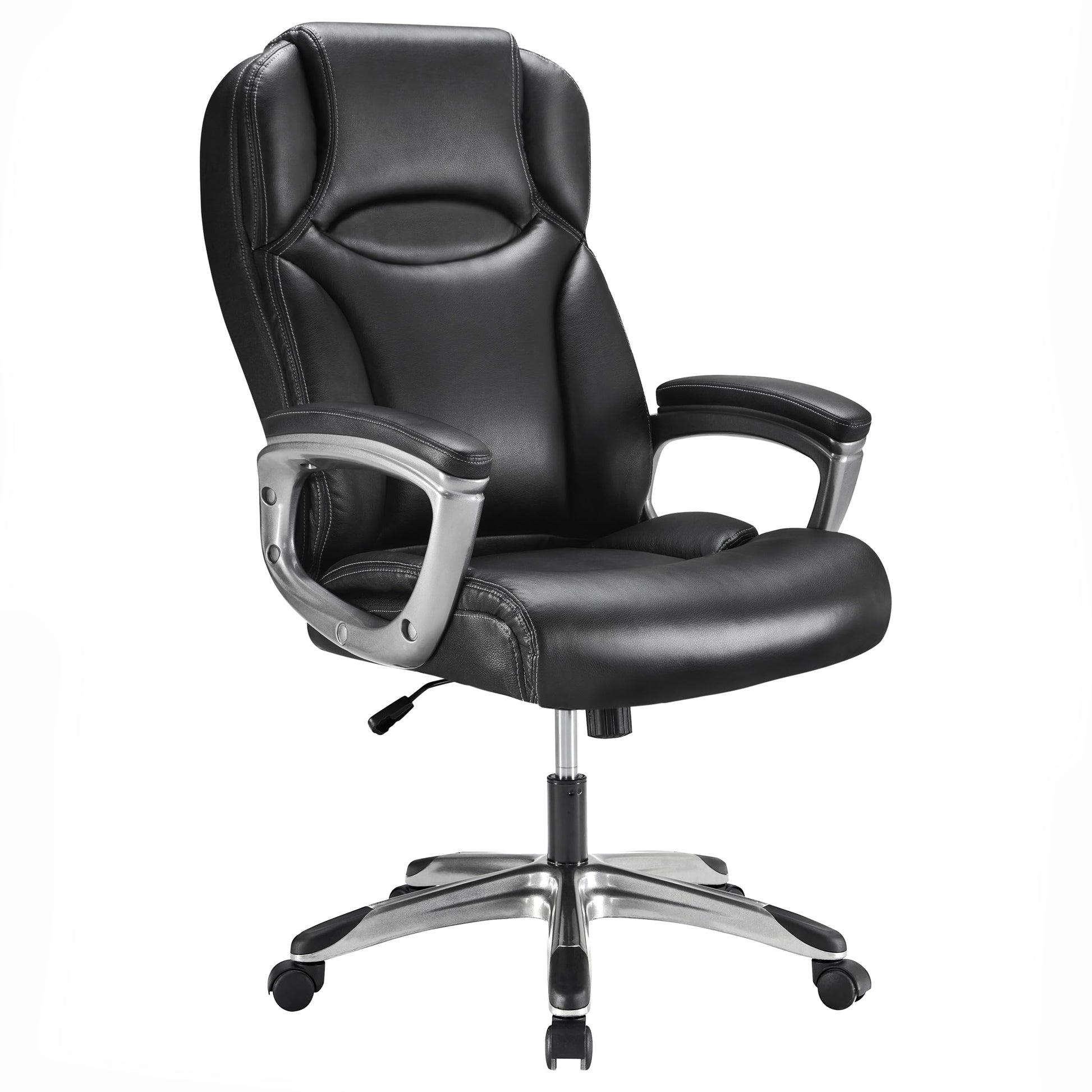 - The modern leather office chair is made of soft and high quality PU leather, waterproof, scratch and stain resistant, colorfast and easy to clean. The padded armrests and wider and higher backrest of leather computer chair release pressure, certified comfort and professional peace of mind!