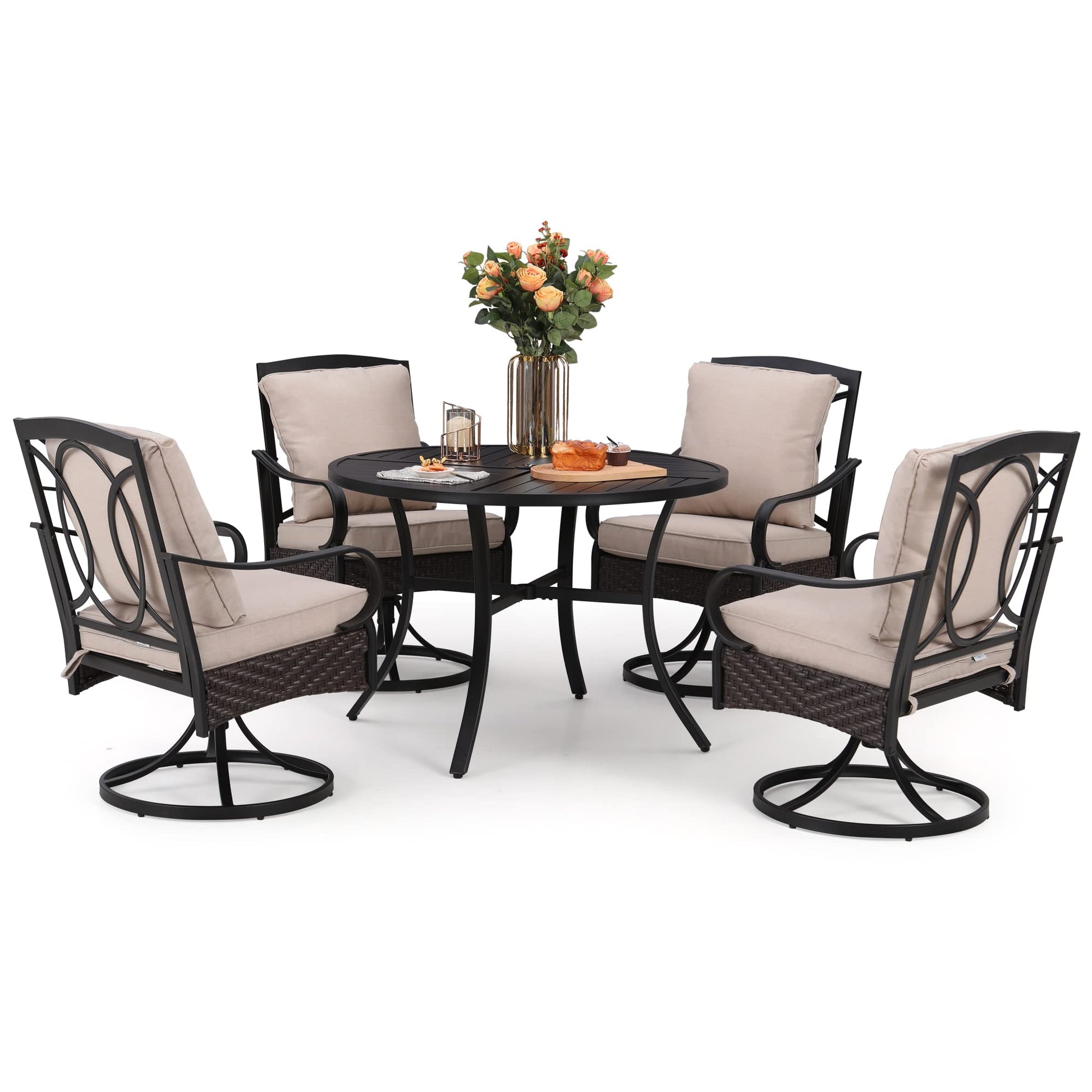 Patio Dining Set for 4, Outdoor Table Furniture Set 5 Piece with 4 Padded Swivel Dining