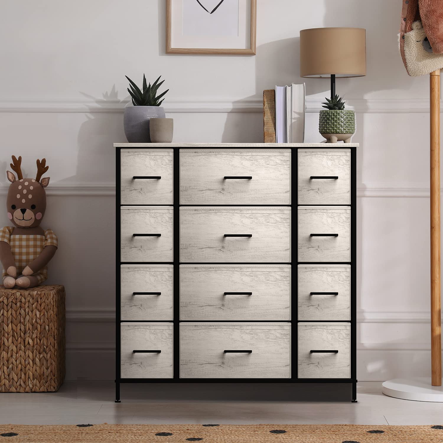 Dresser with 12 Faux Wood Drawers - Large Storage Chest Organizer Unit with Steel Frame