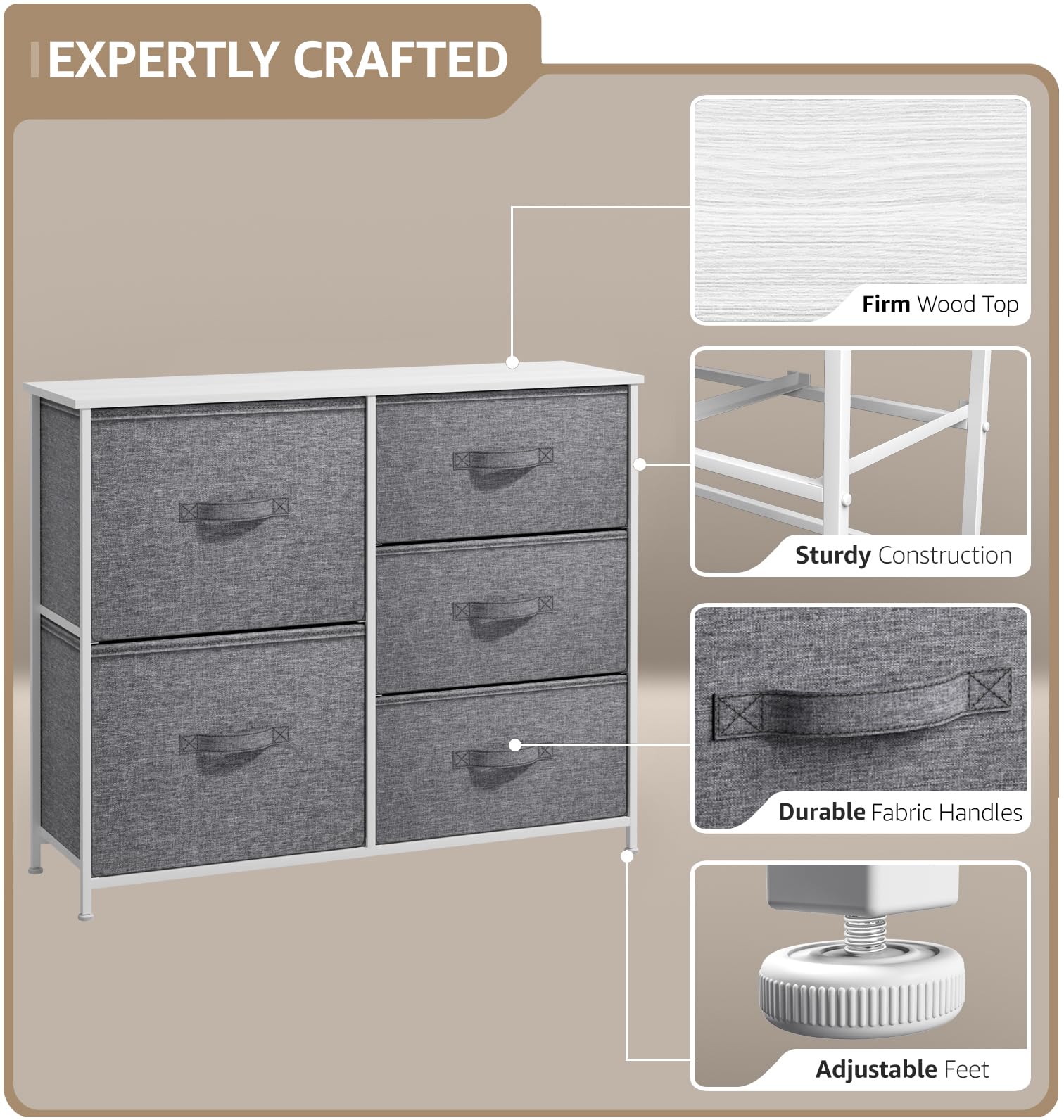 - Quality Design: The Sorbus Dresser for Bedroom is made with a strong steel frame and durable MDF wood top that offers stable support for your belongings - Drawers are easy to clean and made of breathable, waterproof fabric - Due to its lightweight design, the Sorbus dresser is portable and easily moved from room to room