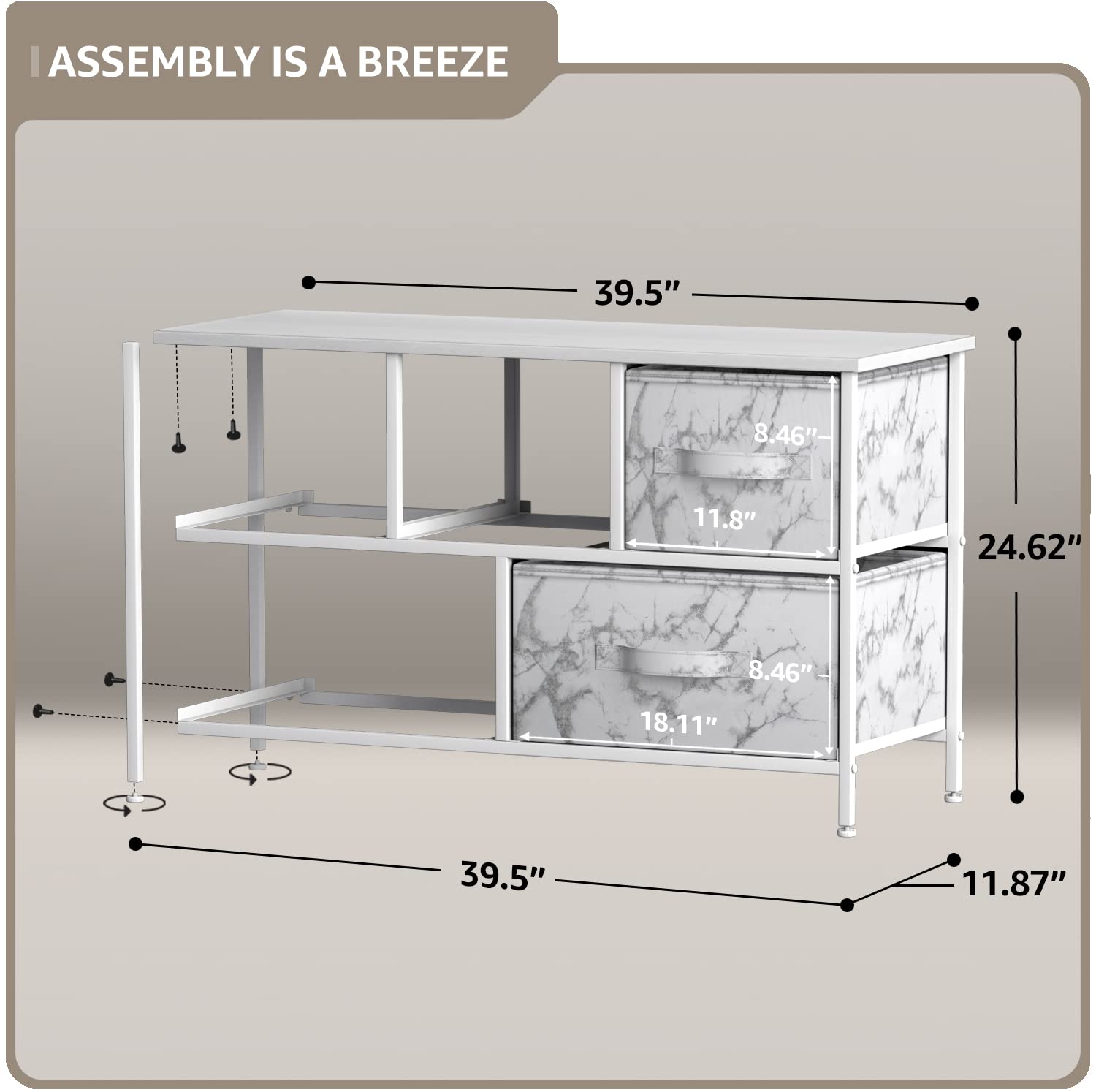 - EASY ASSEMBLY: Put your Sorbus TV Stand with Storage together in minutes so you can organize your home right away - Assembly hardware, instructions, and mounting hardware included - Dresser measures 39.50” L x 11.87” W x 24.62” H - Square drawers measure 11.8x11x8.46 in, Rectangular drawers measure 18.11x11x8.46 in