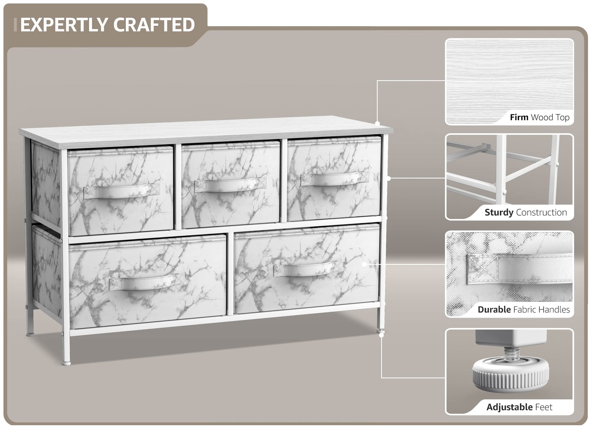 Dresser with 5 Drawers - Storage Chest Organizer Unit with Steel Frame