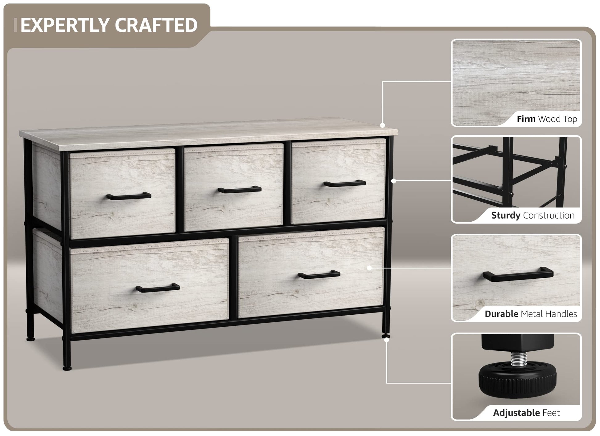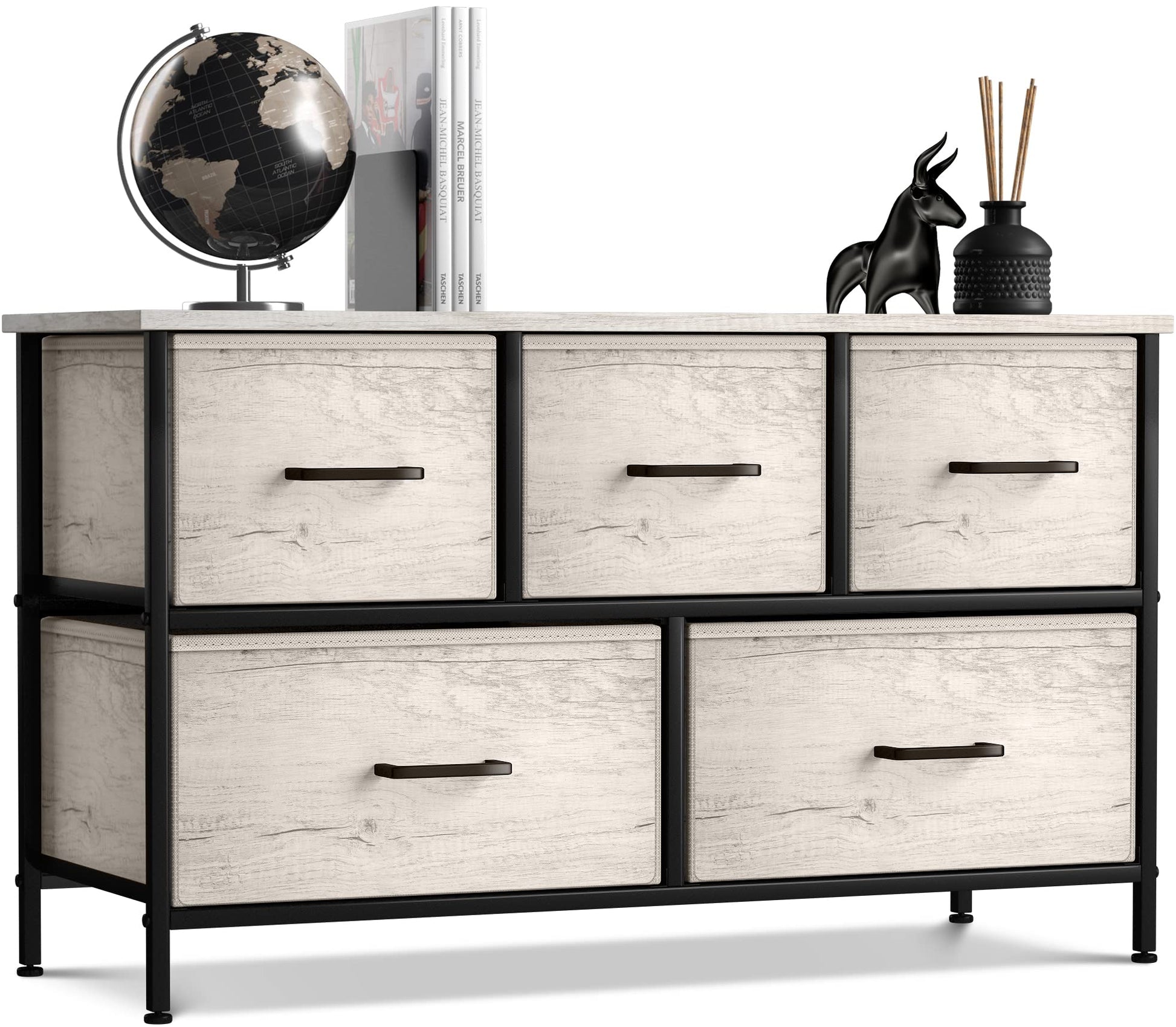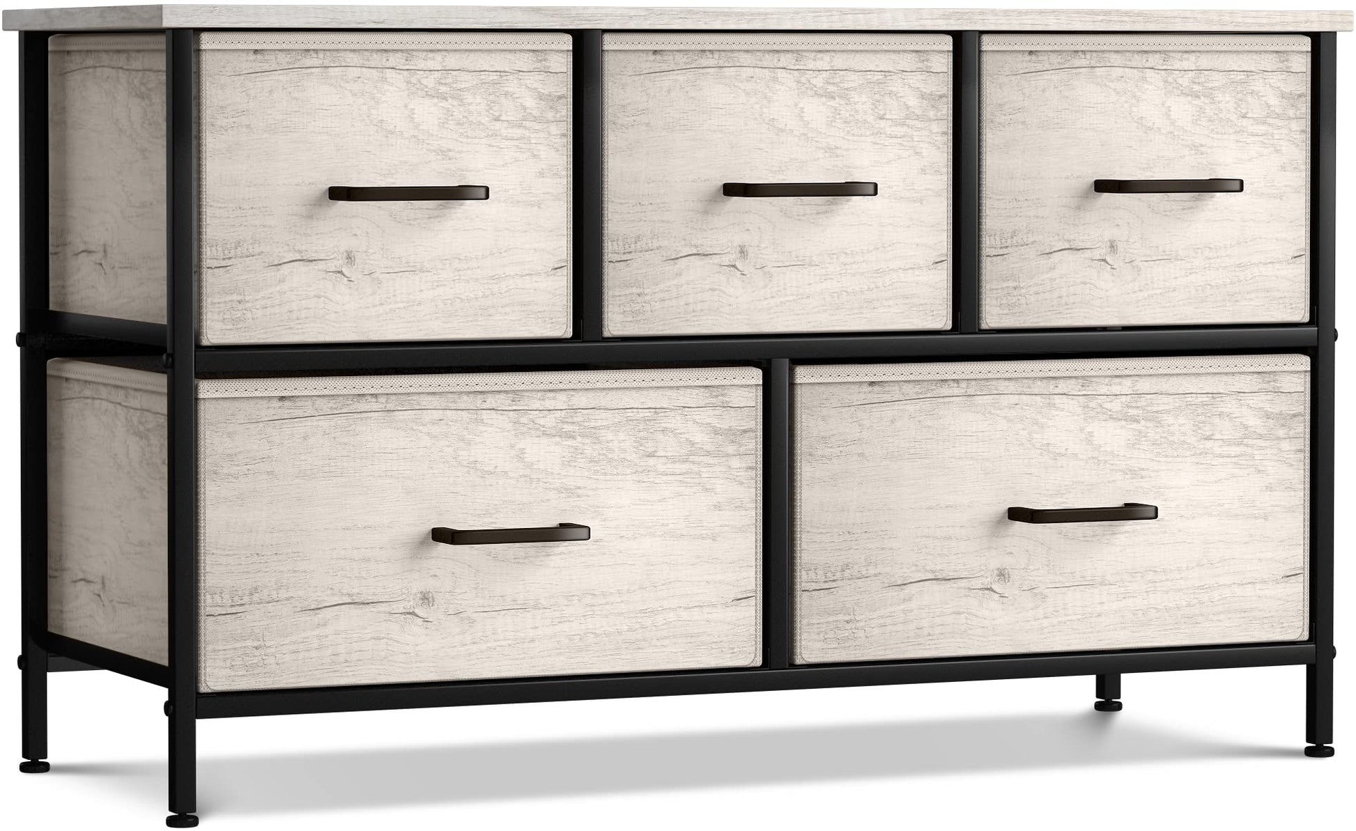 Dresser with 5 Faux Wood Drawers - Storage Unit Organizer Chest for Clothes