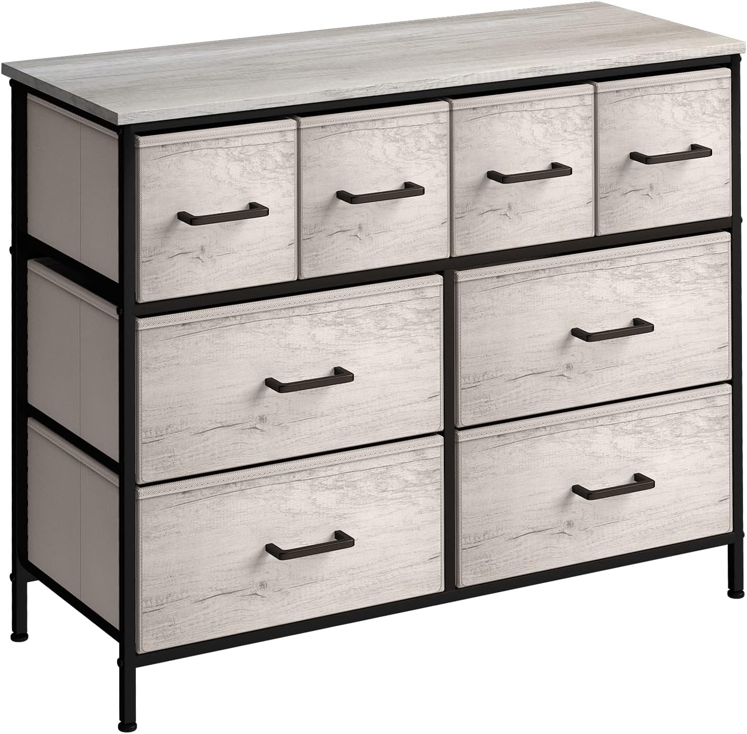 Dresser with 8 Faux Wood Drawers - Chest Organizer Unit with Steel Frame Wood Top