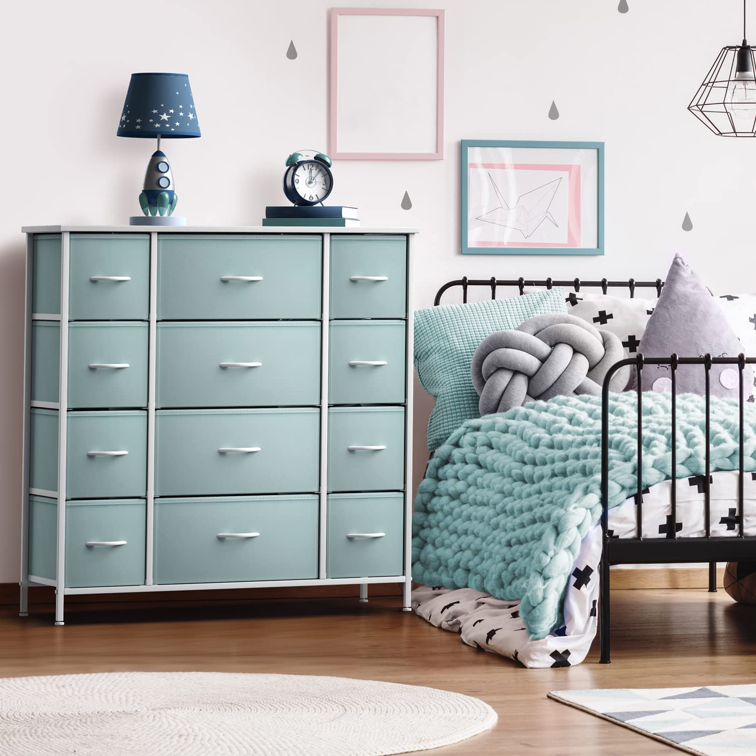Kids Dresser with 12 Drawers - Chest Organizer Unit with Steel Frame Wood Top & Handle