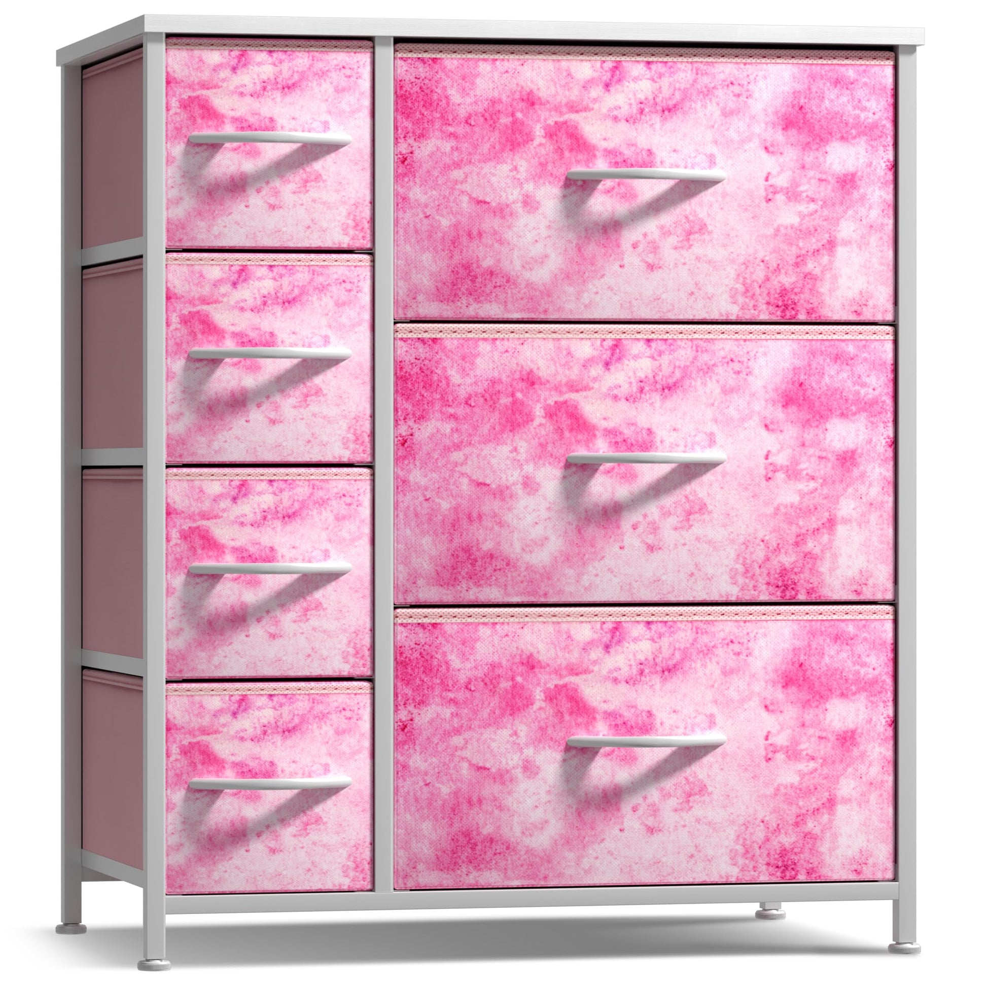 Kids Dresser with 7 Drawers - Storage Chest Organizer Unit with Steel Frame, Wood Top