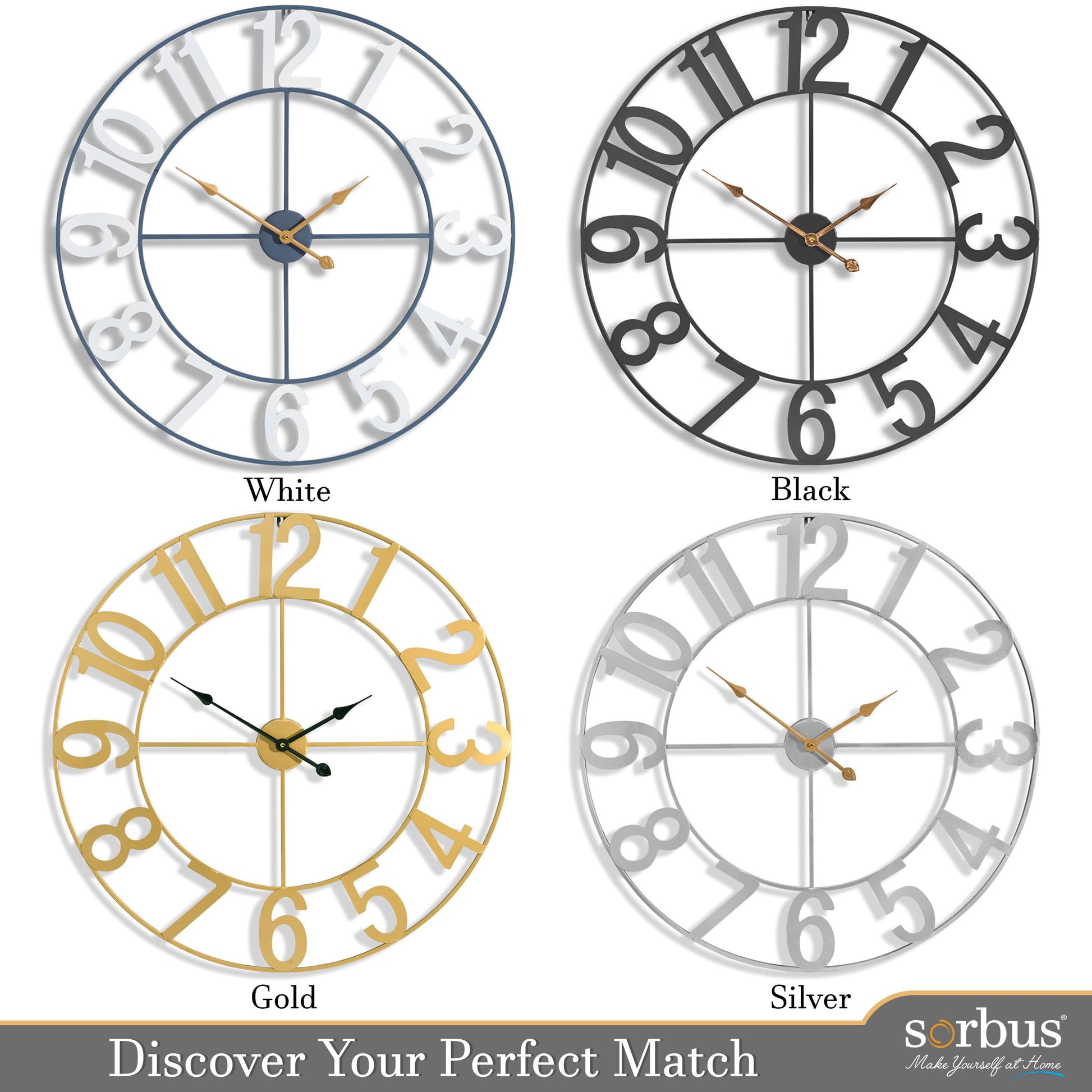 - Sorbus White Metal Wall Clock: Decorative oversized clock featuring a classic numeral style design and accurate analog time display