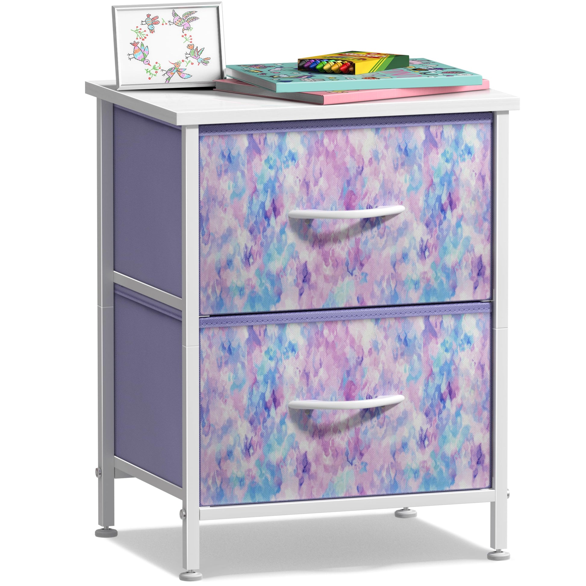 Nightstand with 2 Drawers - Kids Bedside Furniture End Table Night Stand - Steel Frame