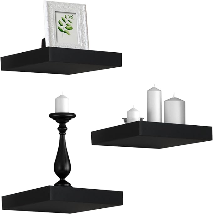 Square Floating Shelf for Wall - 3 Small Shelves with Invisible Mounting Brackets