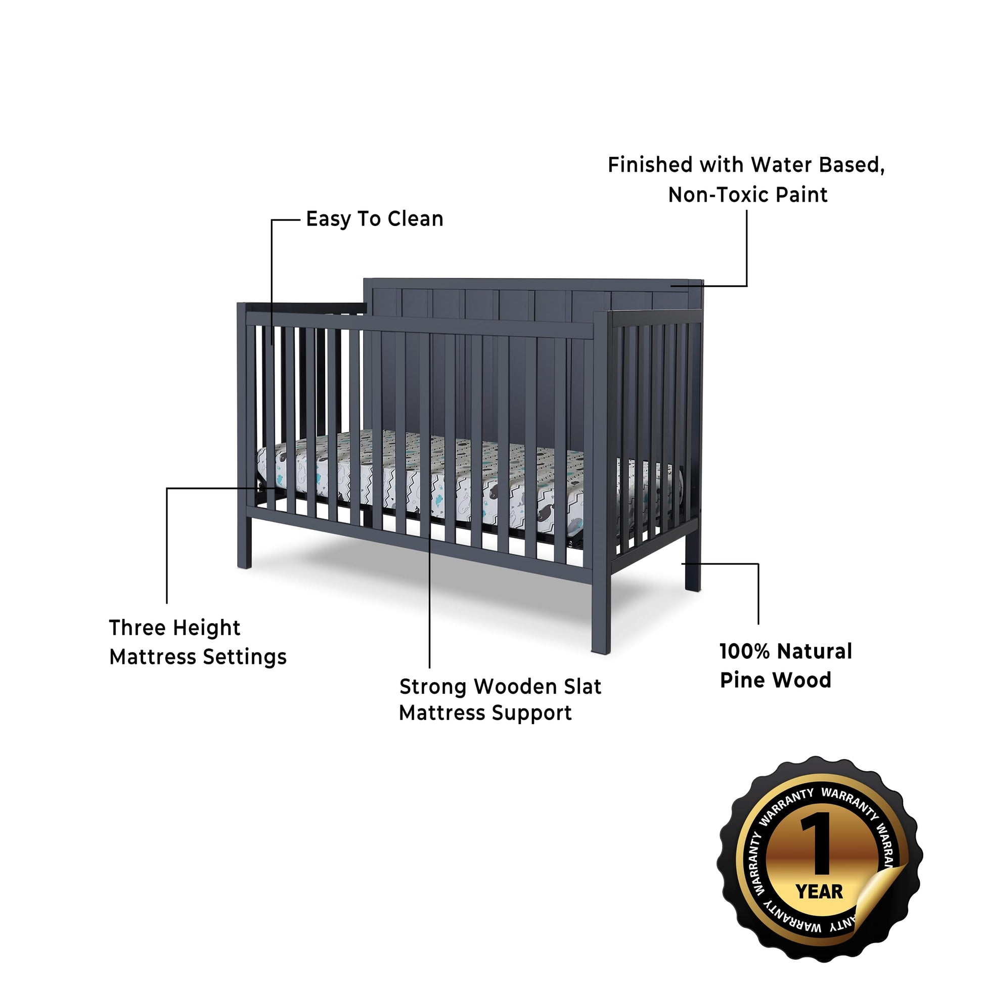 - SUSTANABLE CRAFTMANSHIP: This baby crib is made from durable, all-natural New Zealand pine wood and a water-based paint that is easy to maintain and keep clean. Made with 100% non-toxic elements that are free from harmful materials/chemicals