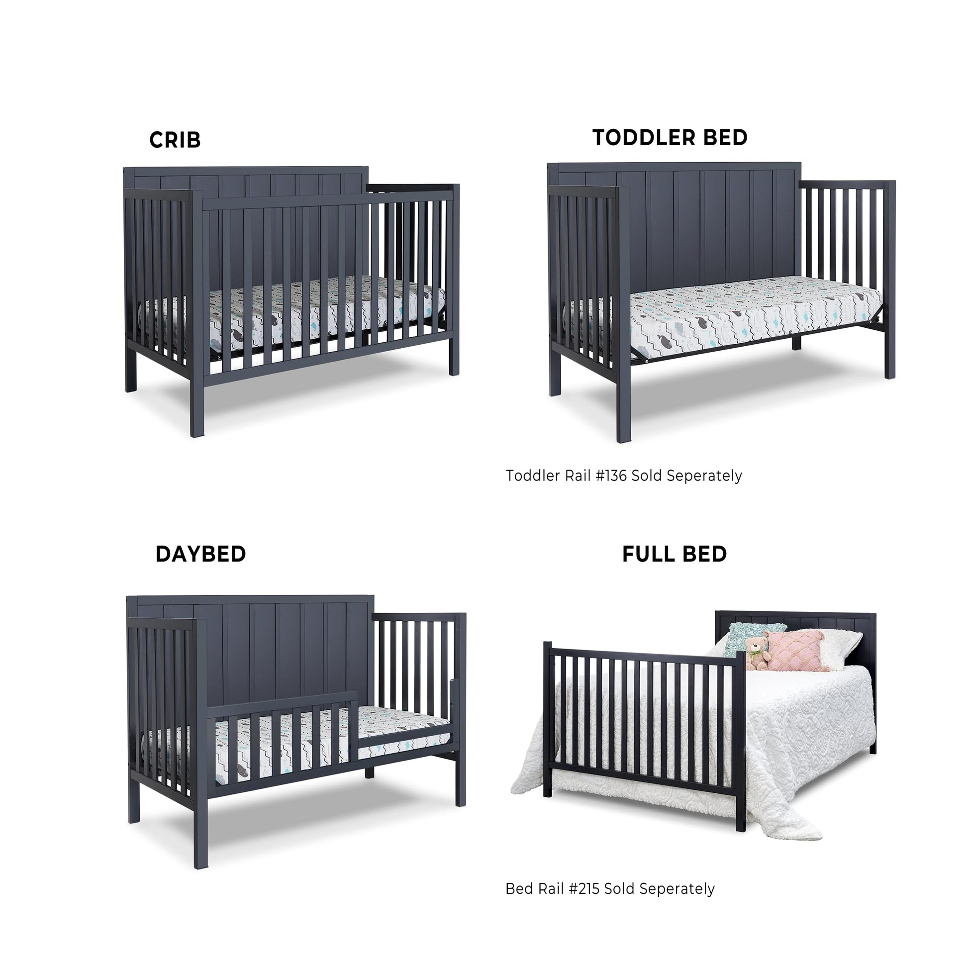 - 4-IN-1 CONVERTIBLE CRIB: Converts from a baby crib (baby mattress sold separately) to a toddler bed (child bed guardrail sold separately), a kid’s daybed and a full-sized bed. The crib has adjustable child mattress support base