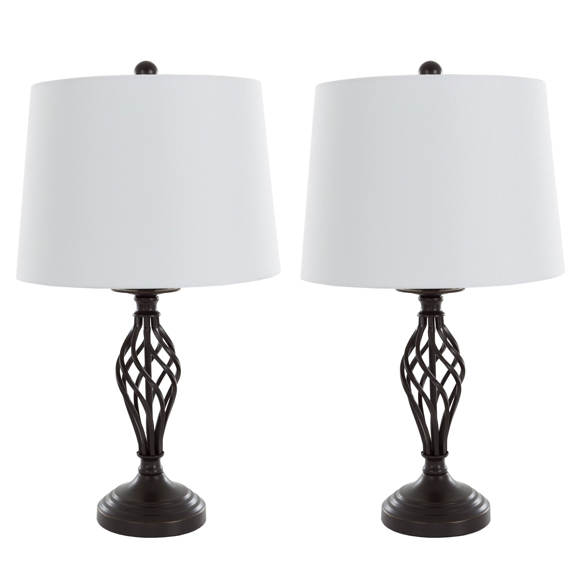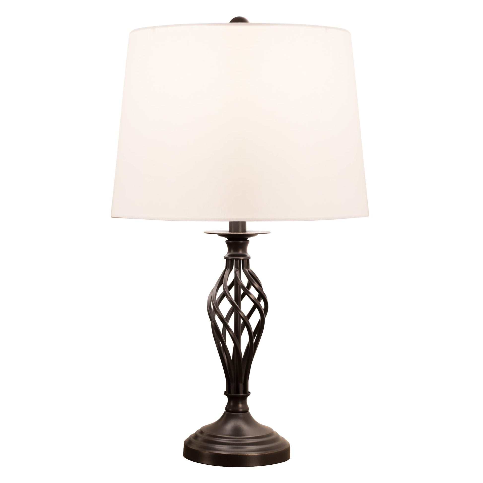 - ELEGANT TABLE LAMPS - Integrate these desk and dorm lamps easily into home decor thanks to the classic spiral cage design. A simple white fabric drum shade sets atop the oil-rubbed bronze base, creating a high-contrast design to complement most spaces.