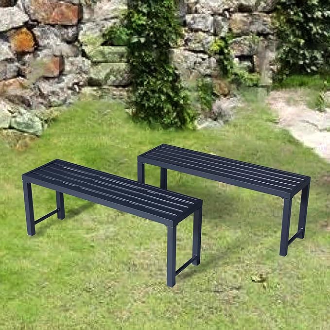 Metal Outdoor Bench Set of 2, 46" Patio Backless Bench for Outdoor