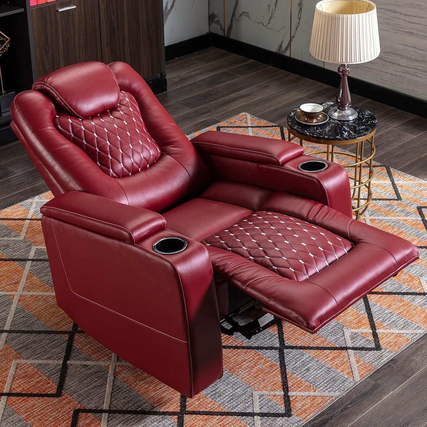 StoneCraft Orion Power Recliner Chair – Dark Red Faux Leather