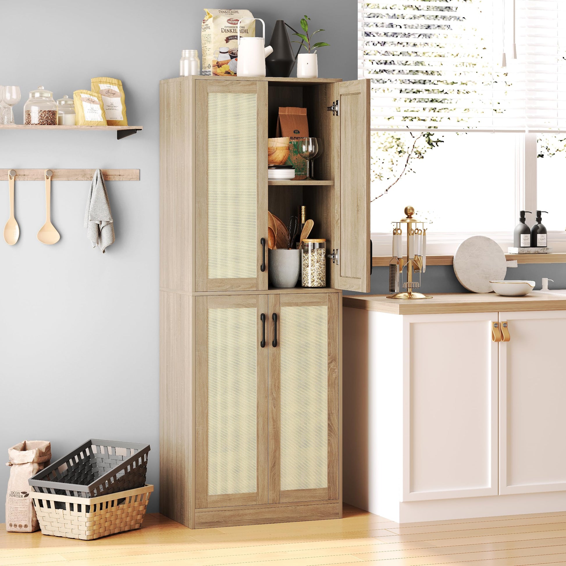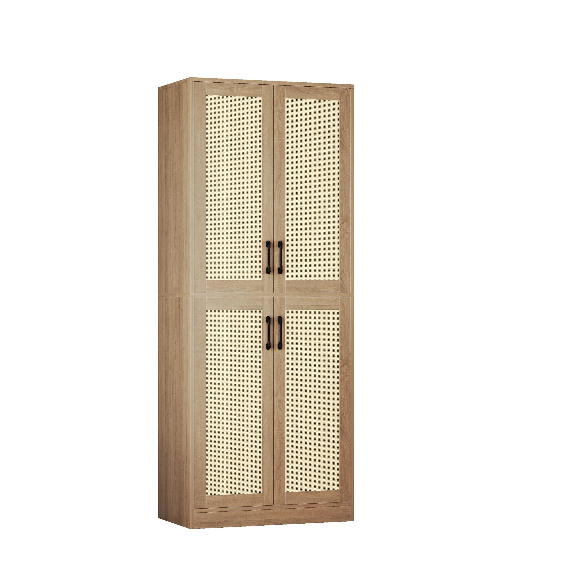 Kitchen Pantry Cabinet, Rattan Cabinet, Tall Storage Cabinet with 4 Doors and Adjustable