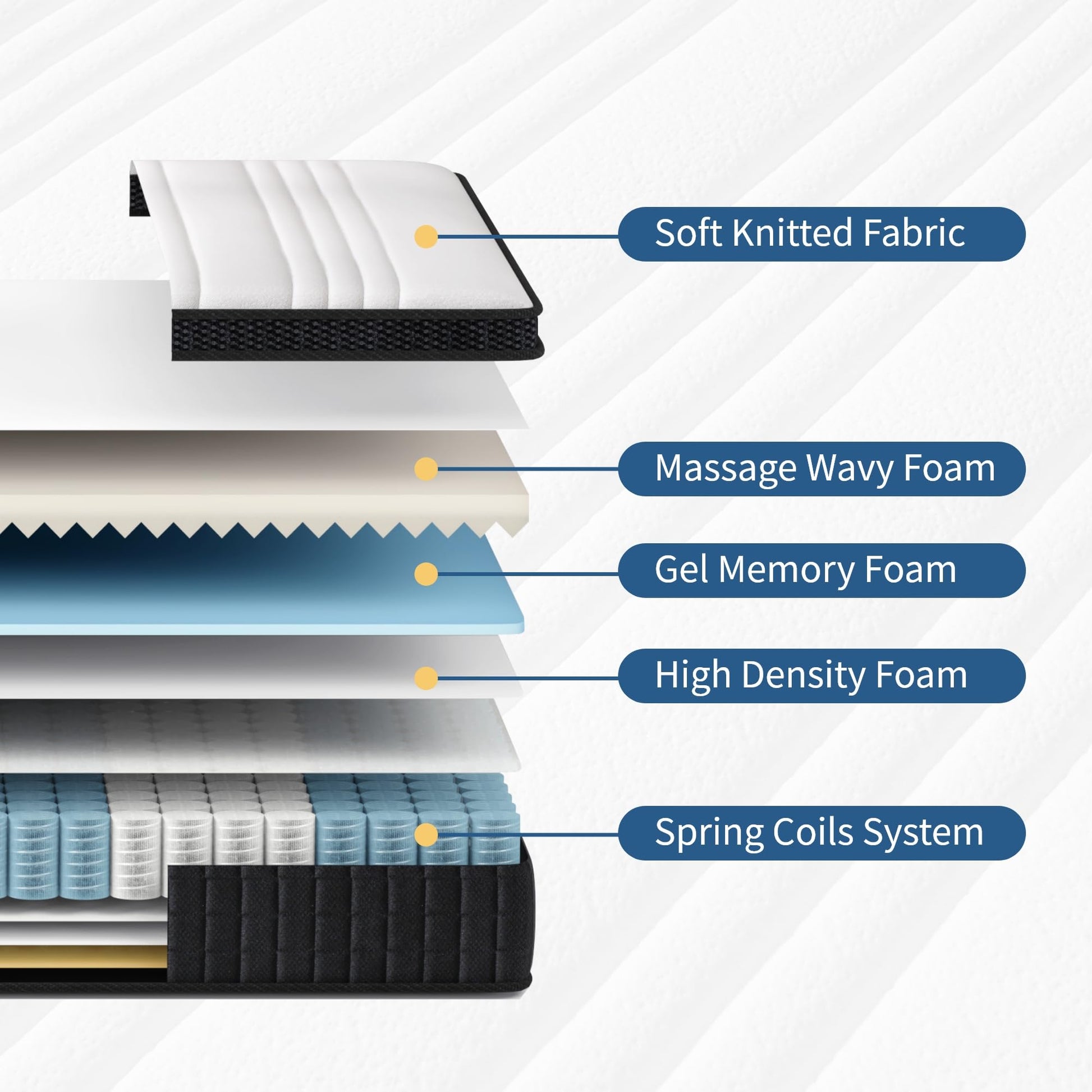 - Comfort and Pressure Relief : Comfort may be first taken into consideration when choosing a mattress. king mattress 12 inch is made of multiple layers of different foams including massage wave foam, memory foam and supportive foam, which slowly contours to your body according to pressure, evenly spreading weight and relieving pressure.
