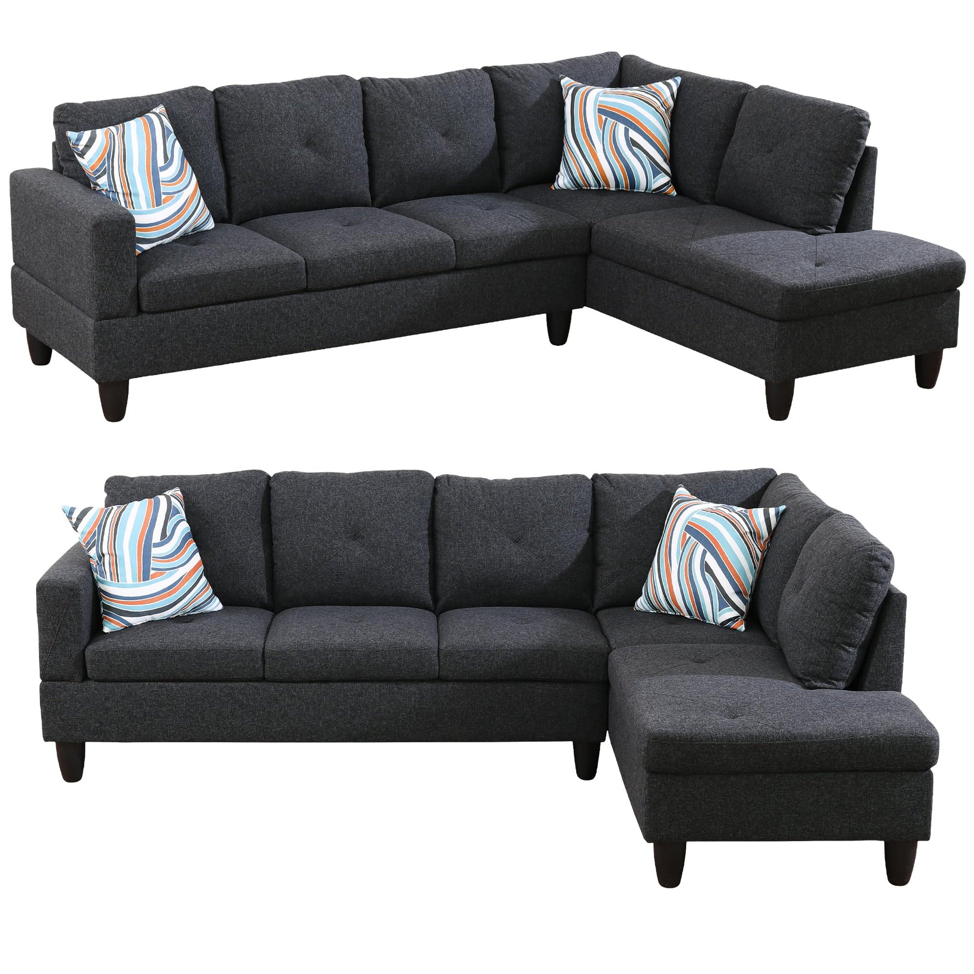 L-shaped Sectional Sofa Set Luxurious Flannelette 5-seat Couches, Right Facing Chaise