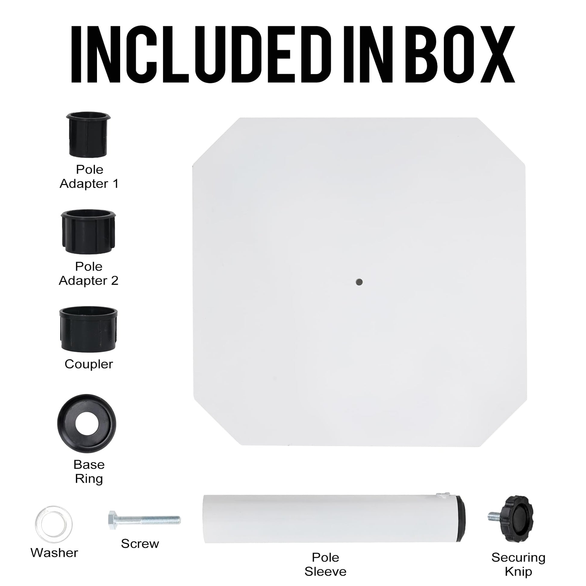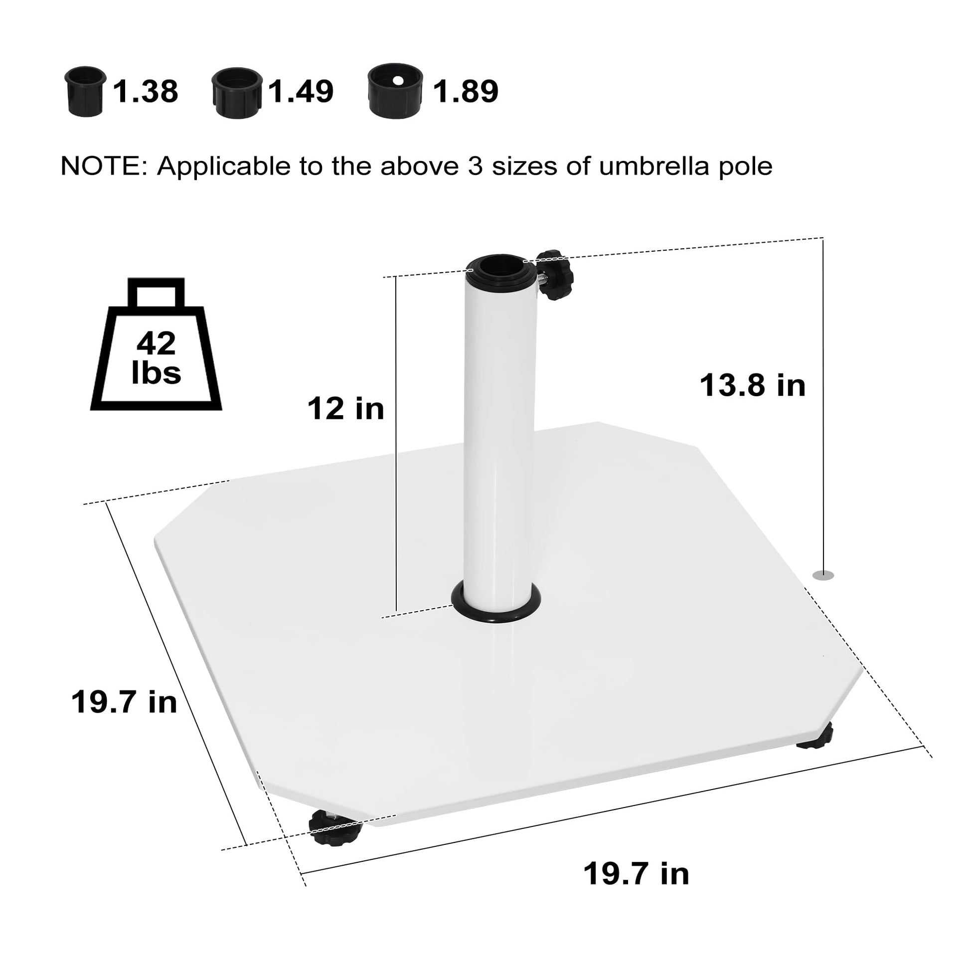 - DURABLE AND STYLISH Heavy duty steel construction in white powder-coated finish, which make the umbrella base long lasting, can definitely add style to your patio, garden, or yard.