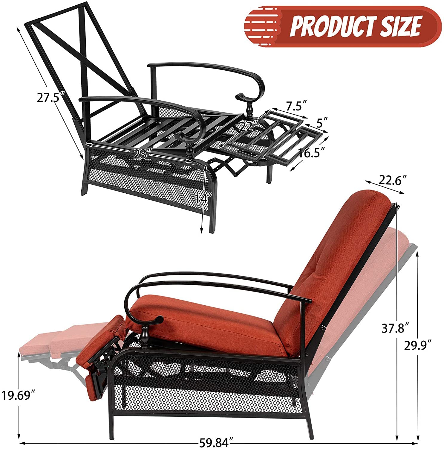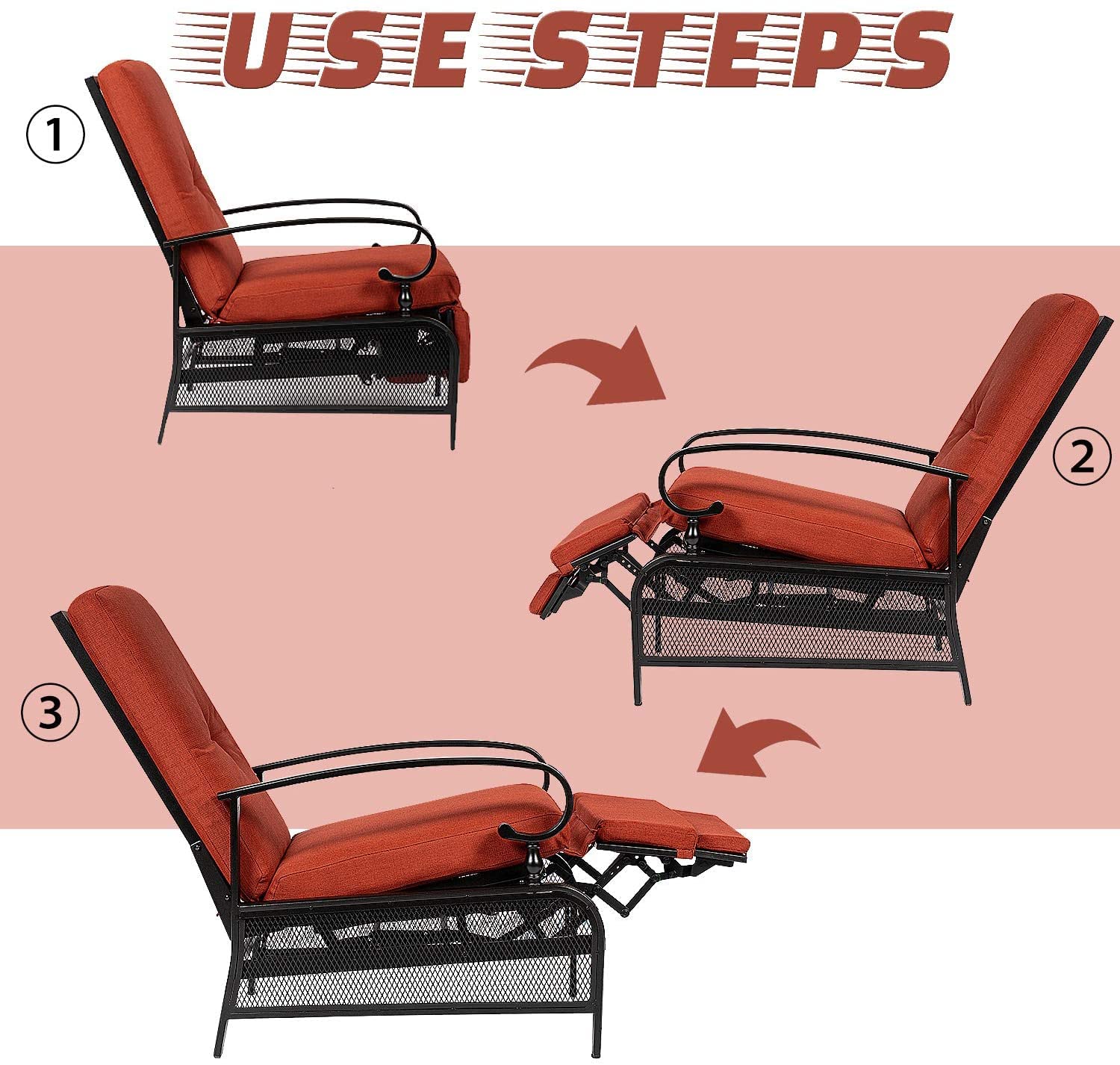 - Special Features: Push-Back Recline, Cushioned Seating, Steel Frame, Easy Assembly