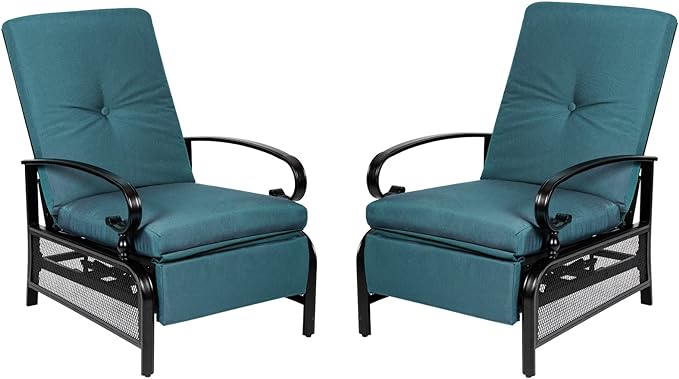 SunEase 2-Pack Outdoor Reclining Lounge Chairs – Push Back Design, Steel Frame & Cushioned Comfort