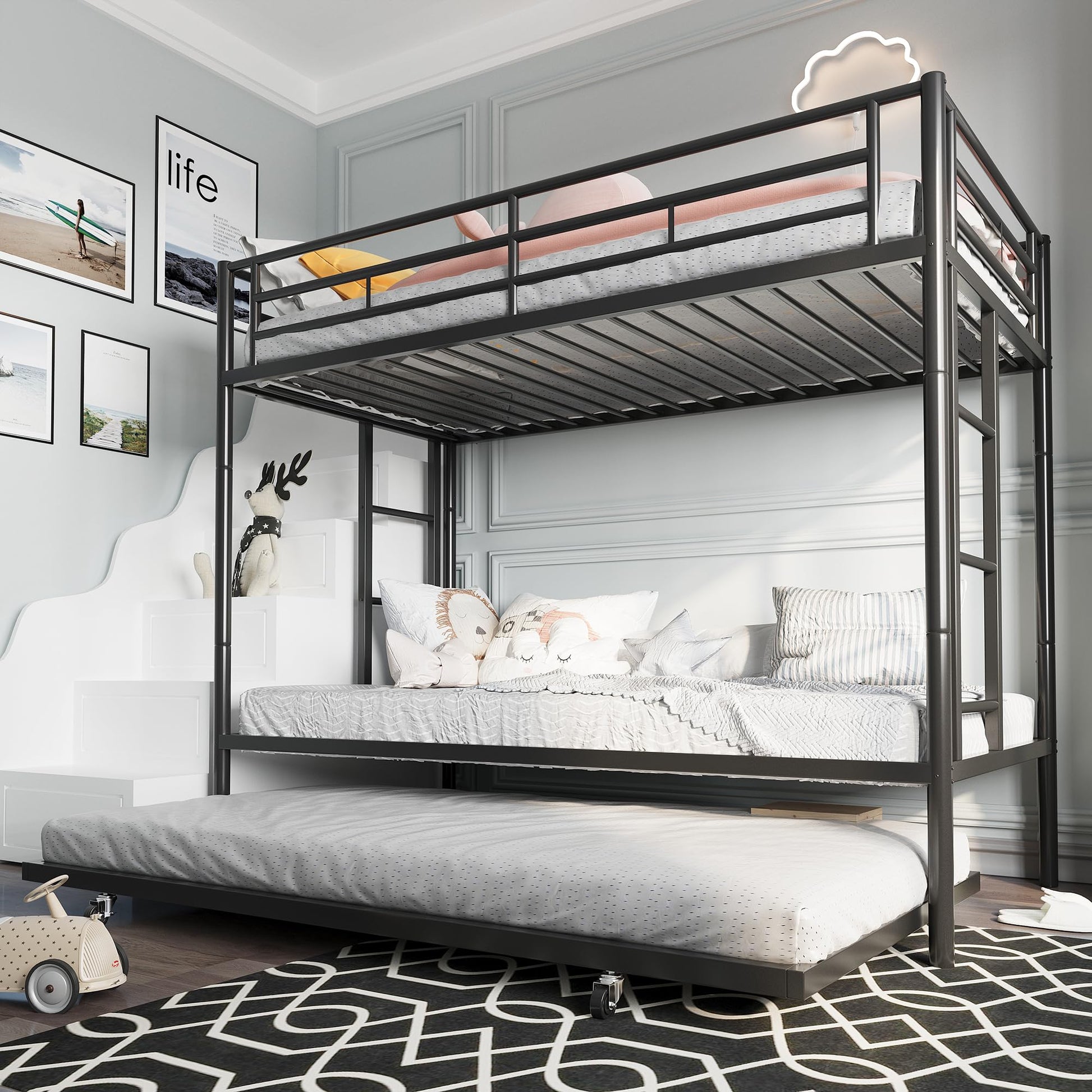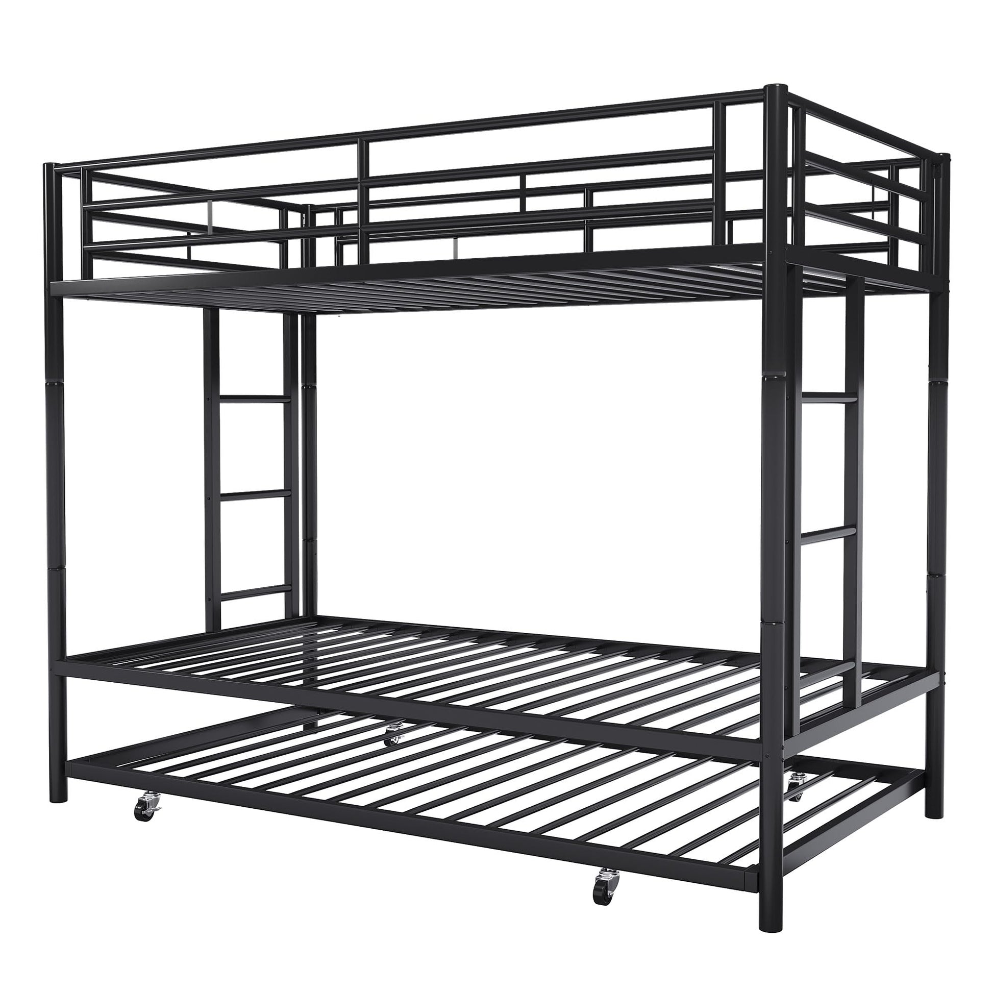 Metal Loft Bed with 2 Secured Ladders, Bunk Bed Twin Over Full with Trundle
