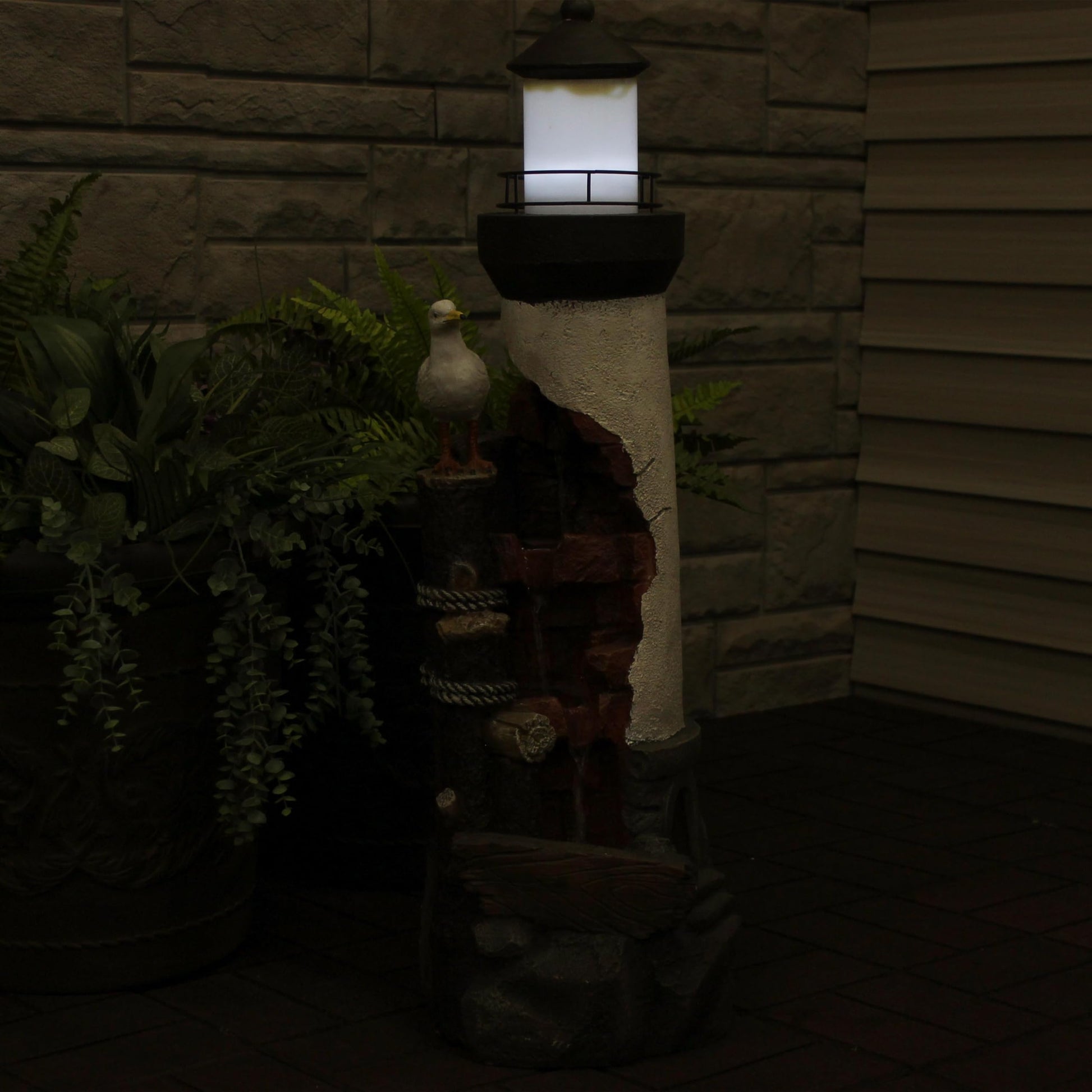 - LED LIGHT: This fountain features an LED light to illuminate it after dark. The light shines from the top of the fountain, creating a lifelike lighthouse effect.