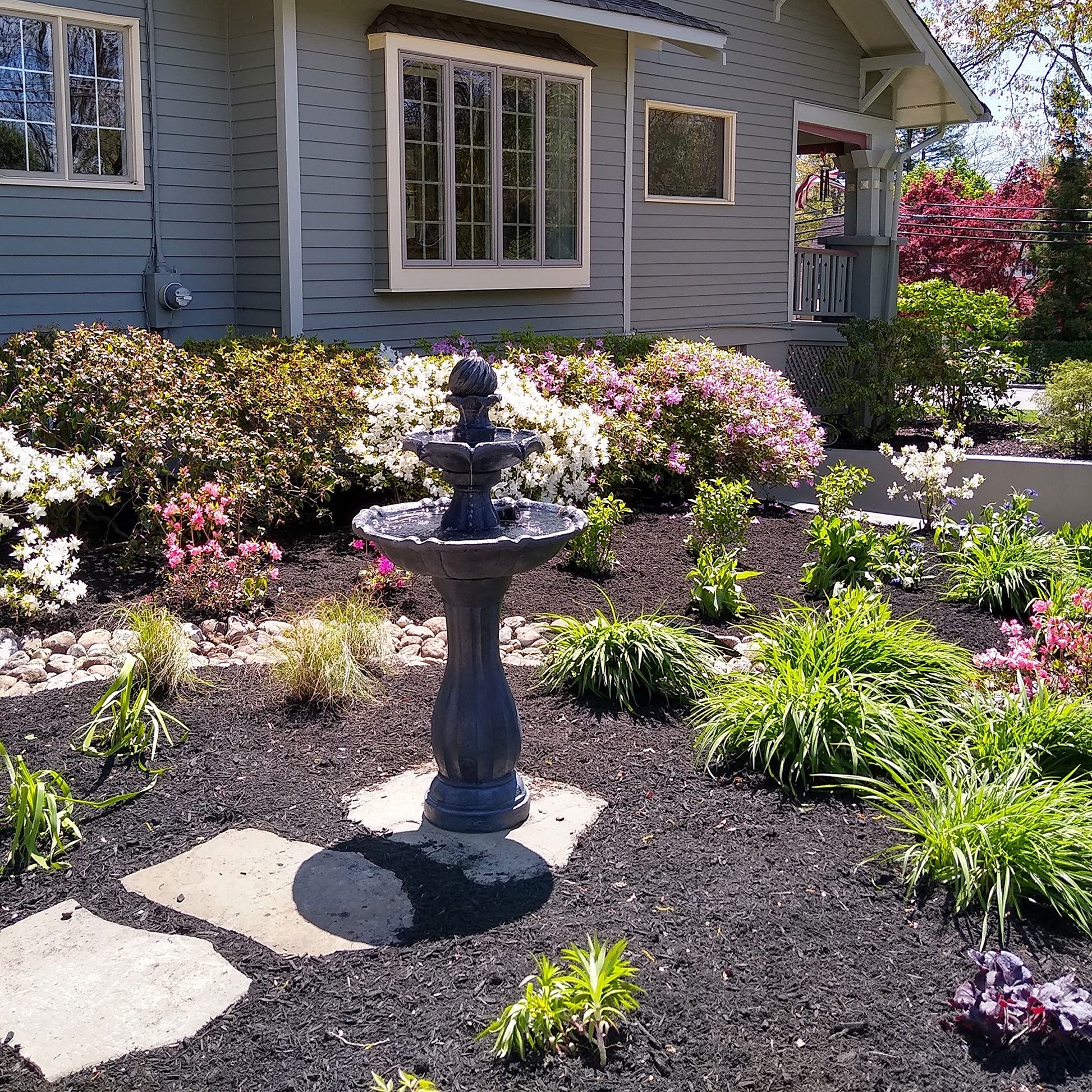 - A COMPLETE FOUNTAIN: This outdoor waterfall fountain contains a solar panel with rechargeable battery pack, a compatible submersible water pump, and a 16' power cord so the panel can be installed in a convenient location.