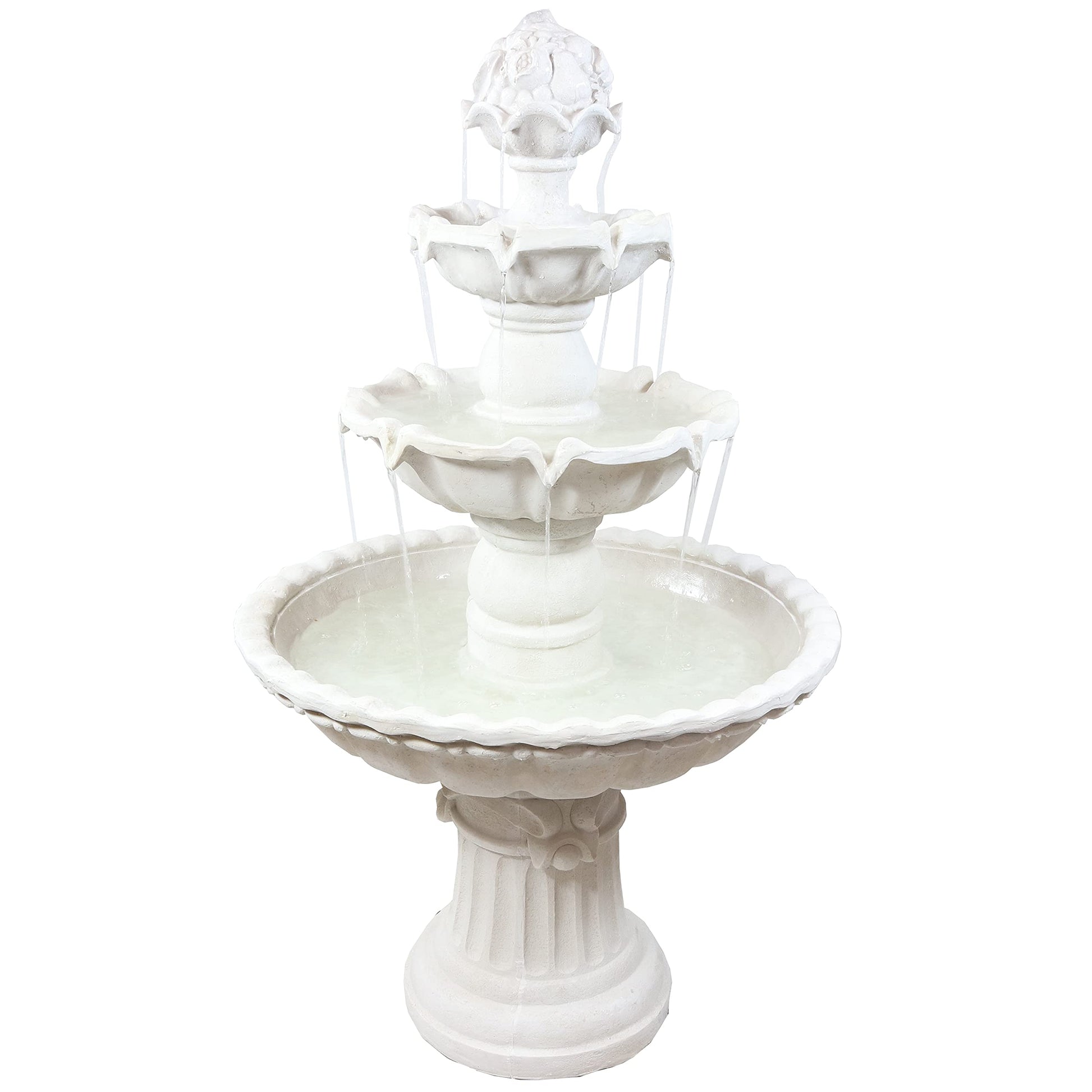 - BEAUTIFUL AND DURABLE DESIGN: This large outdoor fountain is made from top-quality, detailed fiberglass that is both long lasting and highly durable. Its classic traditional style makes any space feel like a royal courtyard with its elegant presence.