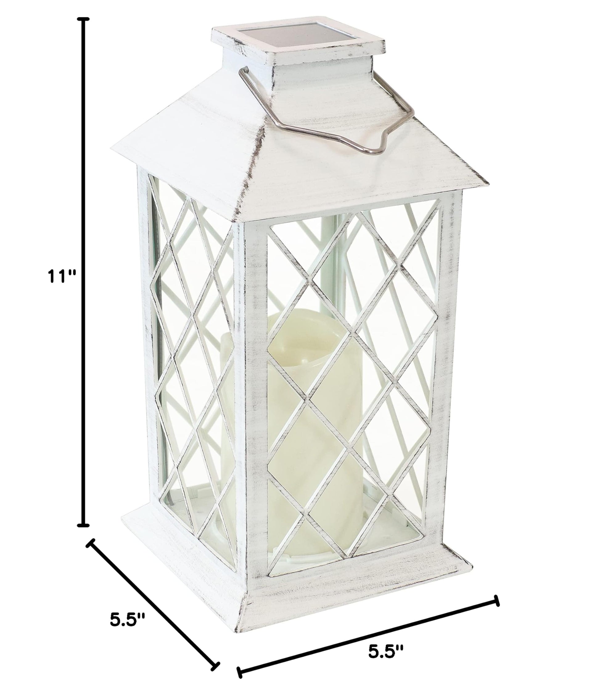 Sunnydaze Concord 11-Inch Solar LED Decorative Candle Lantern - Tabletop/Hanging Light - Set of 2 - White