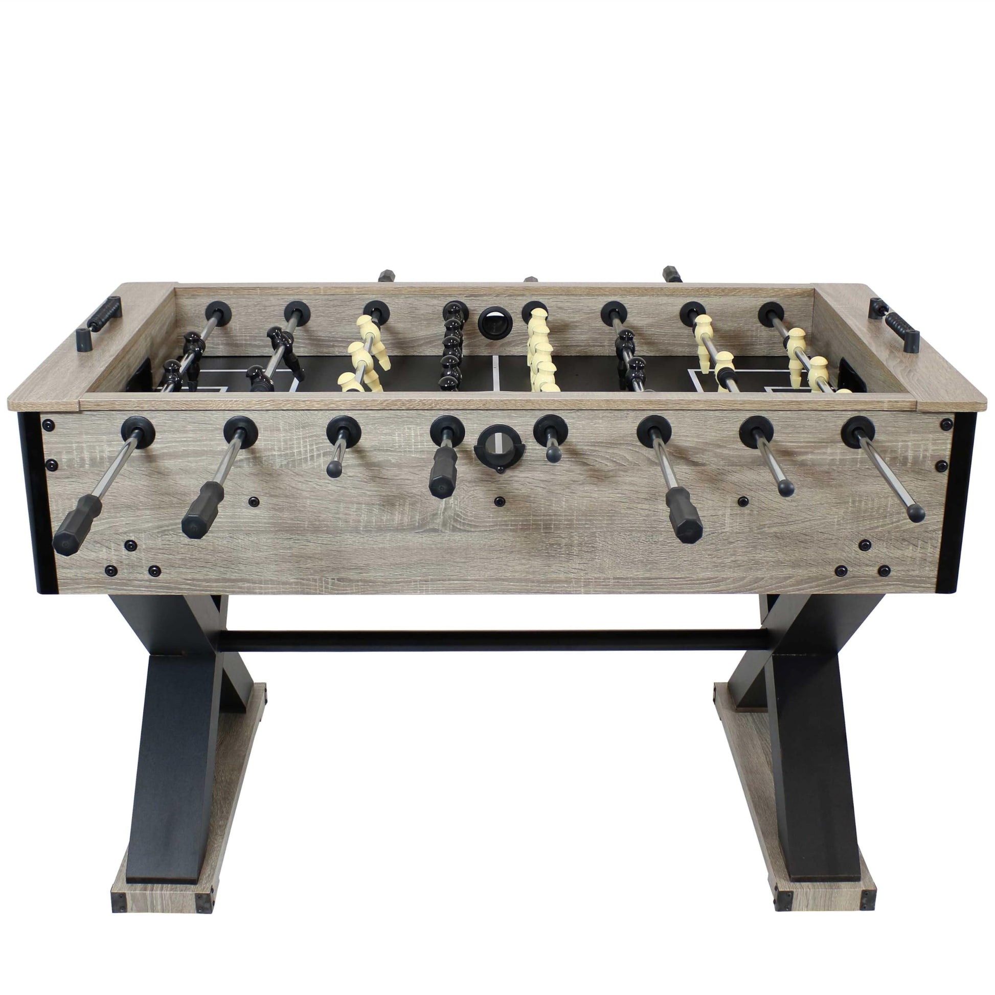 - HIGH PERFORMANCE: This foosball table features ball bearings which make it easy to spin the rods as well as comfortable rubber grips so it's simple to maneuver your players and crush the competition