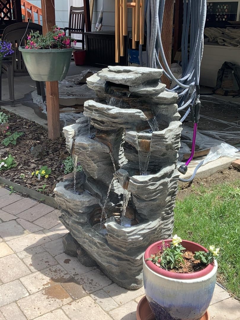 - EASY TO SET UP: Each package includes 1 garden fountain with 6 LED lights and 1 electric submersible pump with adjustable flow. No plumbing is required for assembly with the included pump making this outdoor waterfall fountain easy to put together.