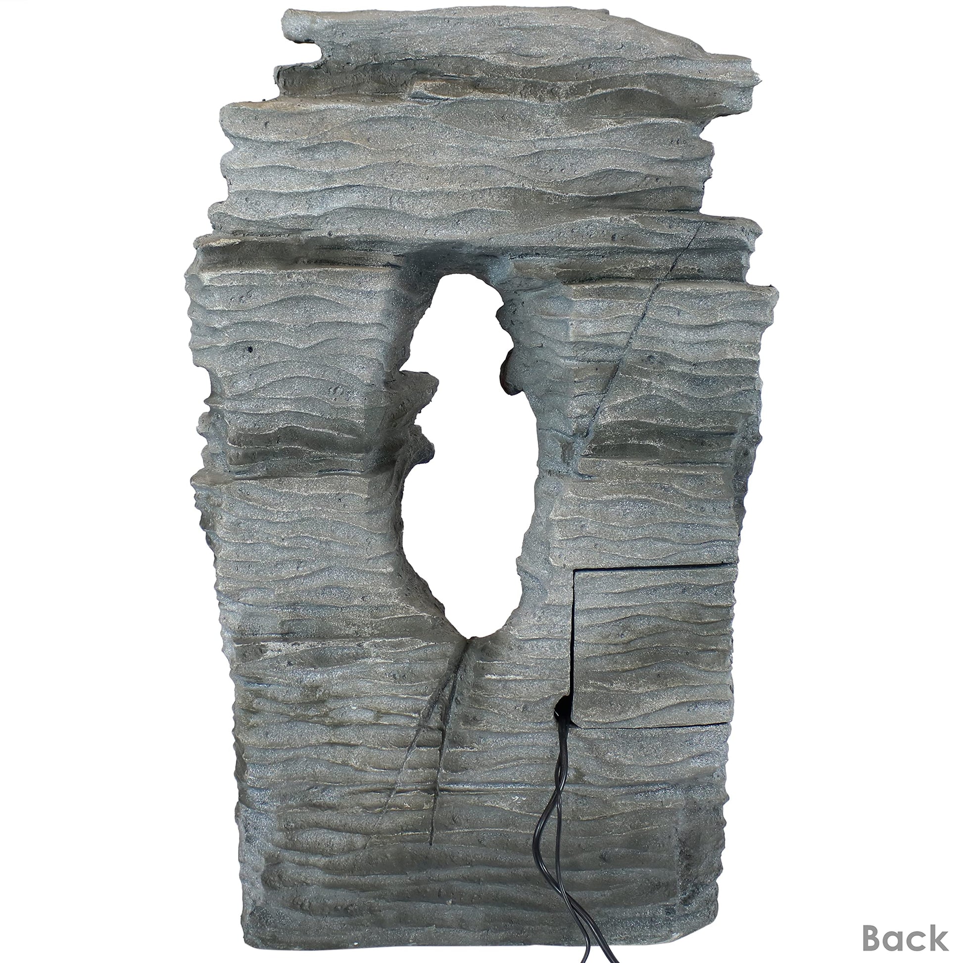 Dual Cascading Rock Falls 39-Inch Outdoor Water Fountain with LED Lights