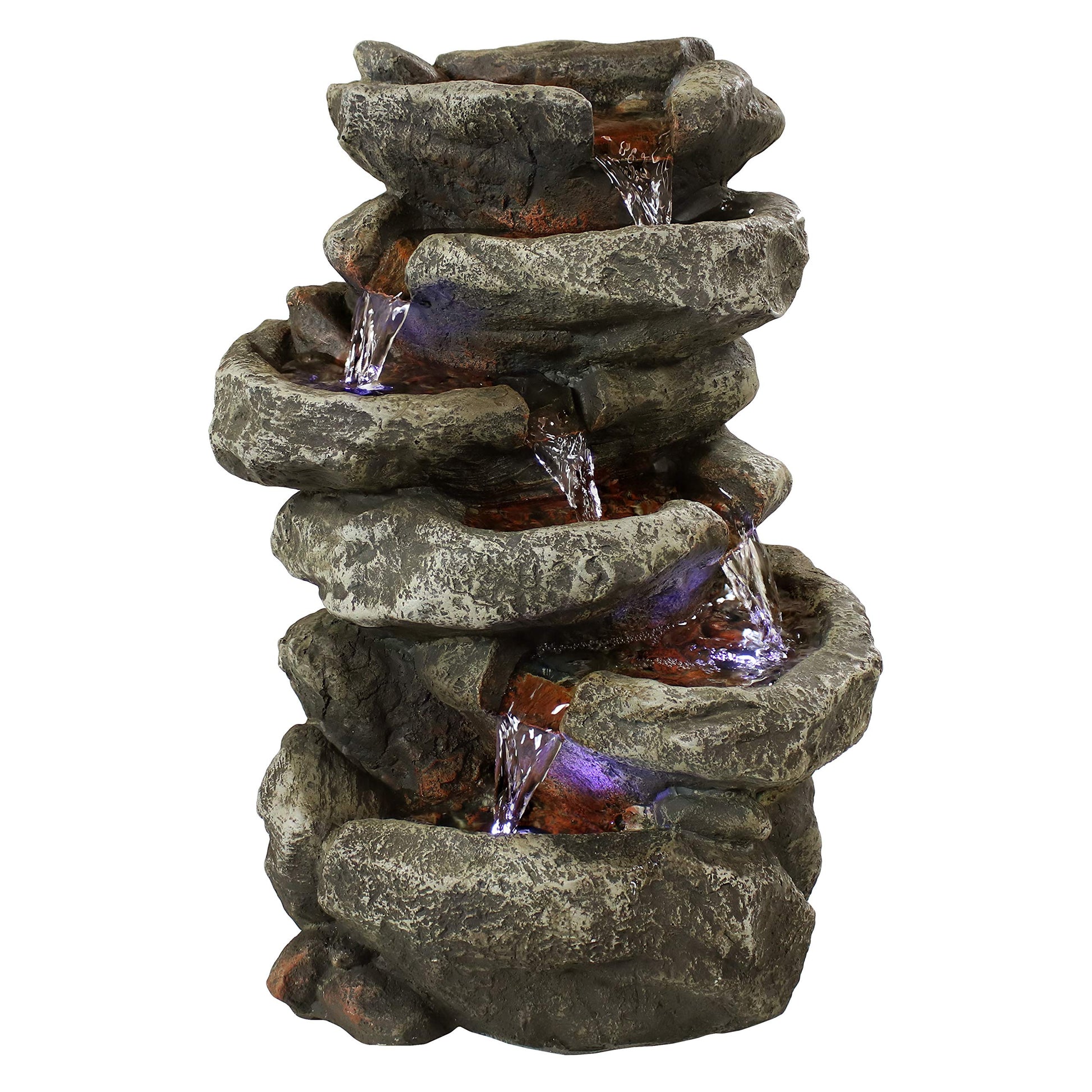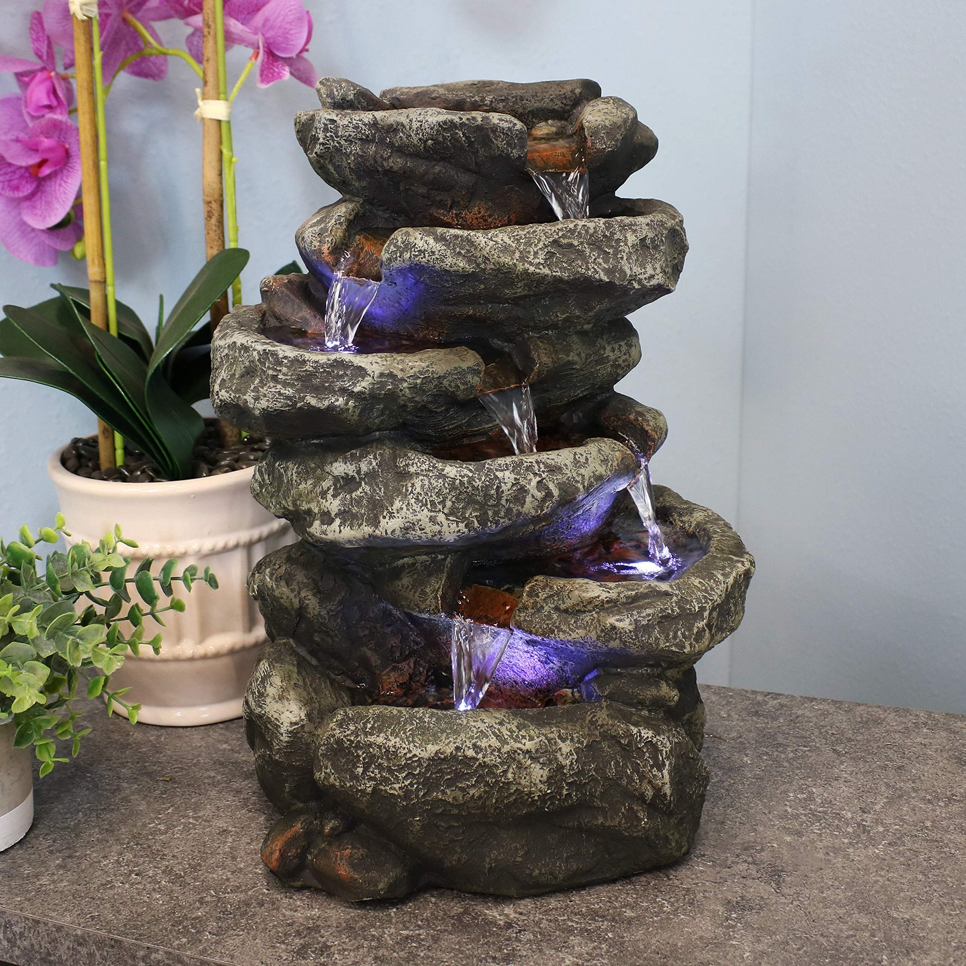 Stone Falls 15-Inch 6-Tier Tabletop Water Fountain with LED Lights - Electric