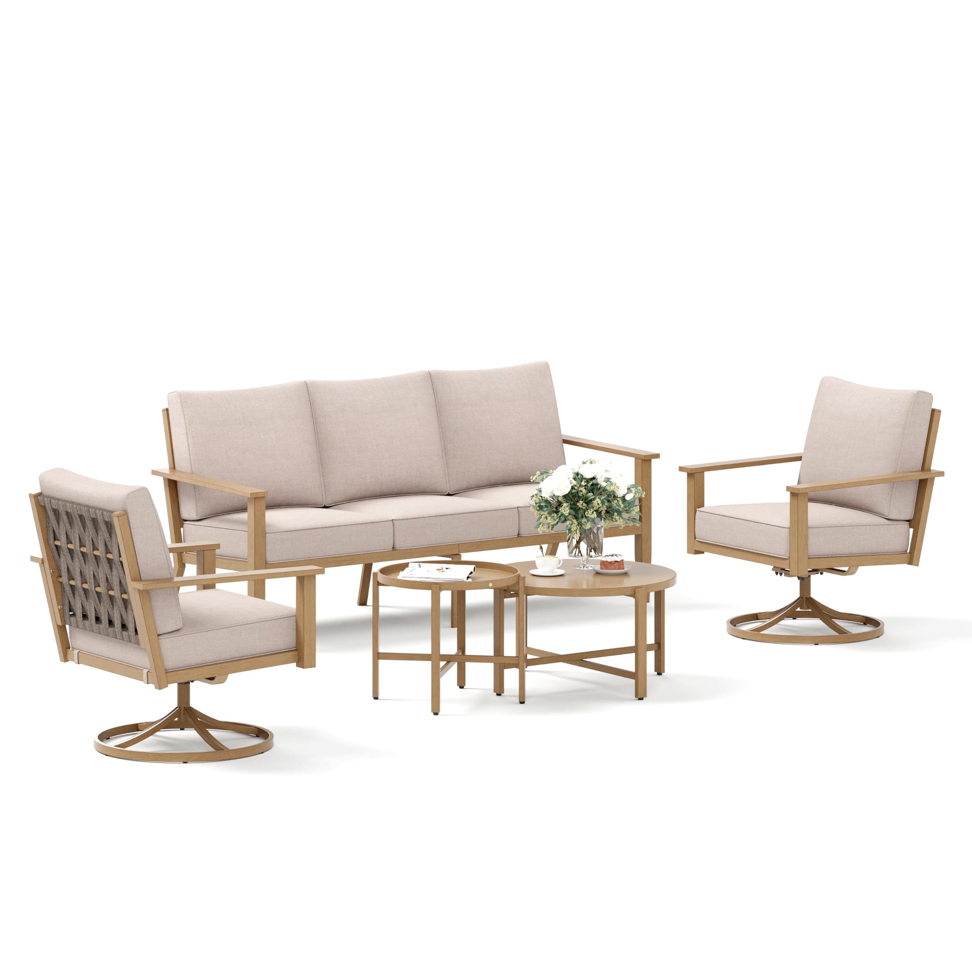 - SUNSHINE VALLEY OUTDOOR FURNITURE SETS: The metal outdoor furniture set includes 1 3-seater sofa, 2 swivel chairs, and 1 set of nesting tables.Each single chair can support 300 lbs, and the 3-seater sofa can support 900 lbs.Suited for your backyard, porch, garden, and deck,this set creates a comfortable outdoor space for your family