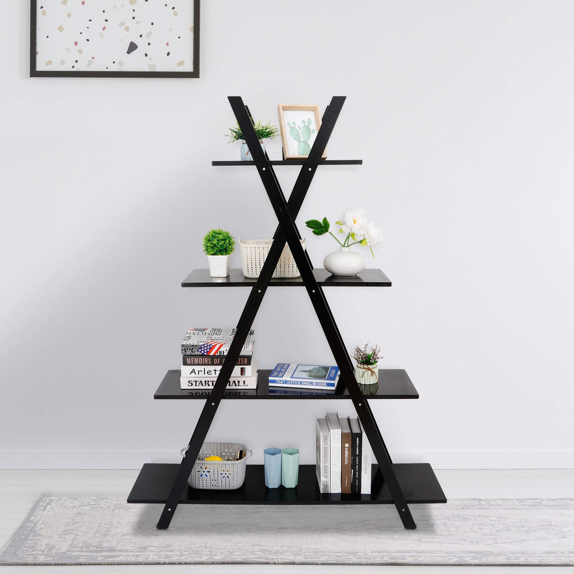 A Frame Bookshelf Storage Shelves, 4 Tier Ladder Bookcase Free Standing