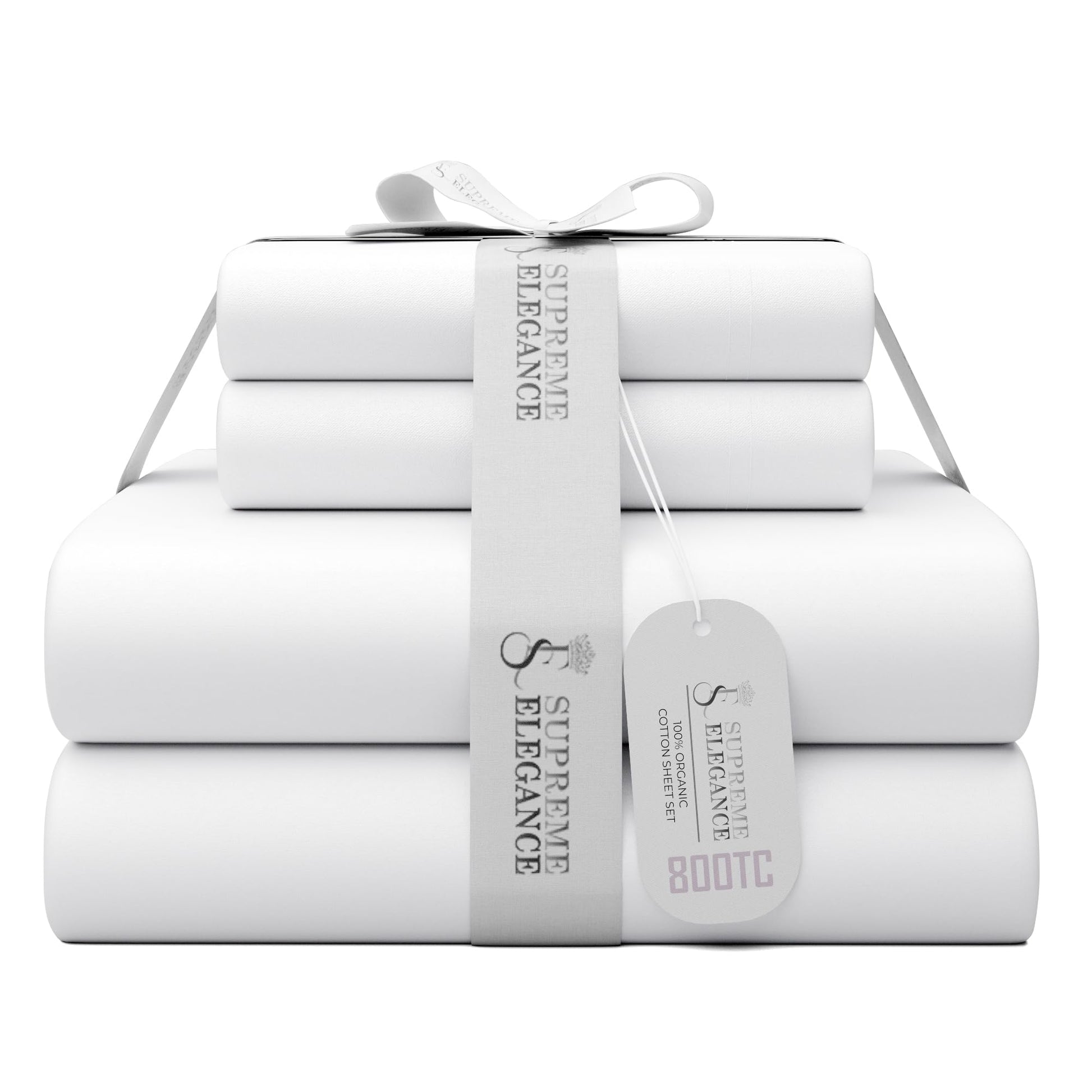 800 Thread Count Queen Arctic White Sheets Set, Ultra Soft & Silky Cotton Rich Easy Care