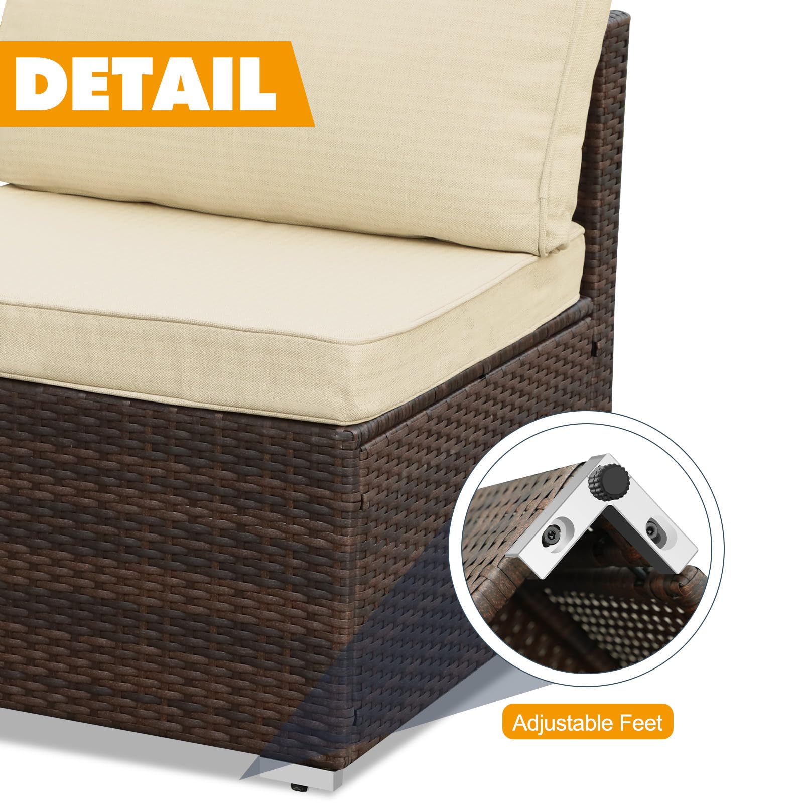 - Modular Flexibility: This versatile Patio Furniture Set allows you to create personalized layouts, such as L-shaped or U-shaped configurations, adapting to different settings like patios, porches, and backyards. Enjoy the flexibility to tailor your space to your liking.