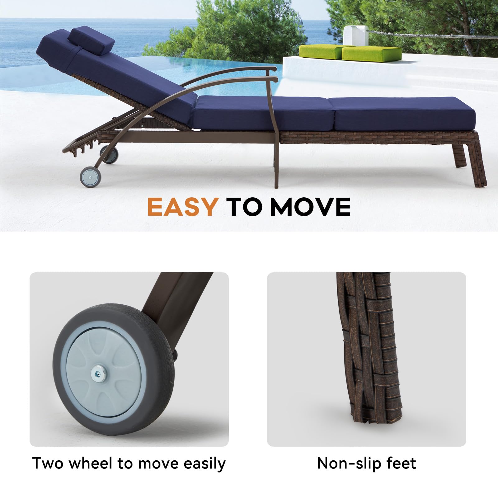 - Easy to Move Featuring convenient 2 rolling wheels, reclining chair offers effortless maneuverability, allowing you to effortlessly chase the sun or seek shade wherever you desire.
