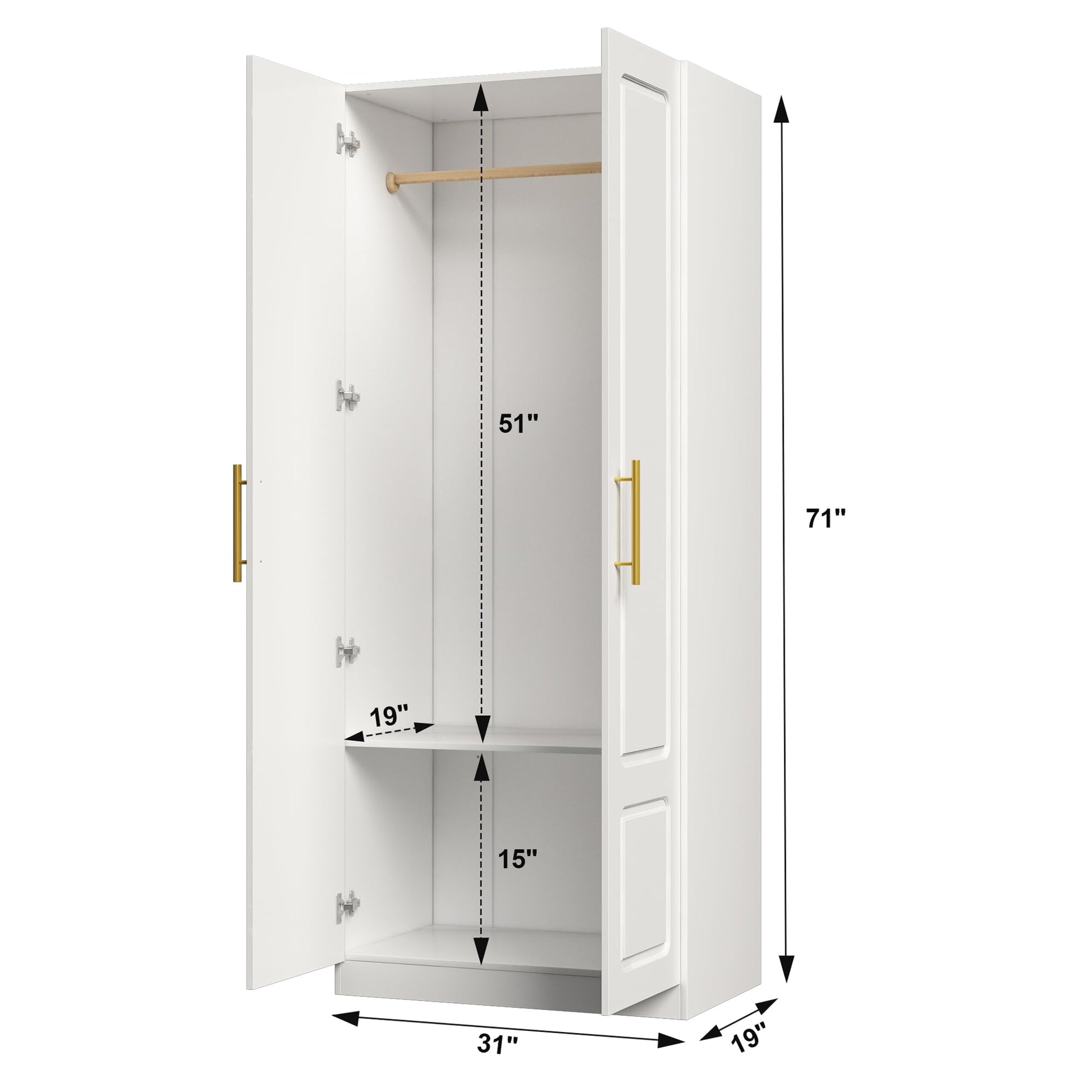 - White wood grain lacquer finish of the Wardrobe and delicate edge banding give it a modern and elegant look that complements any decor. Its compact design saves space and provides a neat and comfortable storage experience.