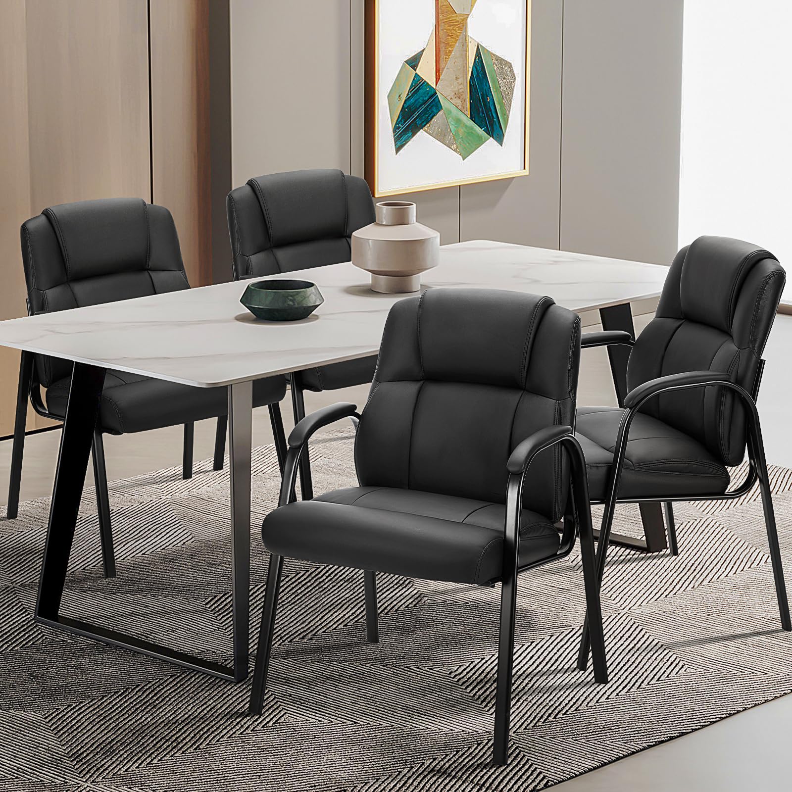 Leather Guest Chair Set of 4 with Padded Arms, Comfy Waiting Room Chairs