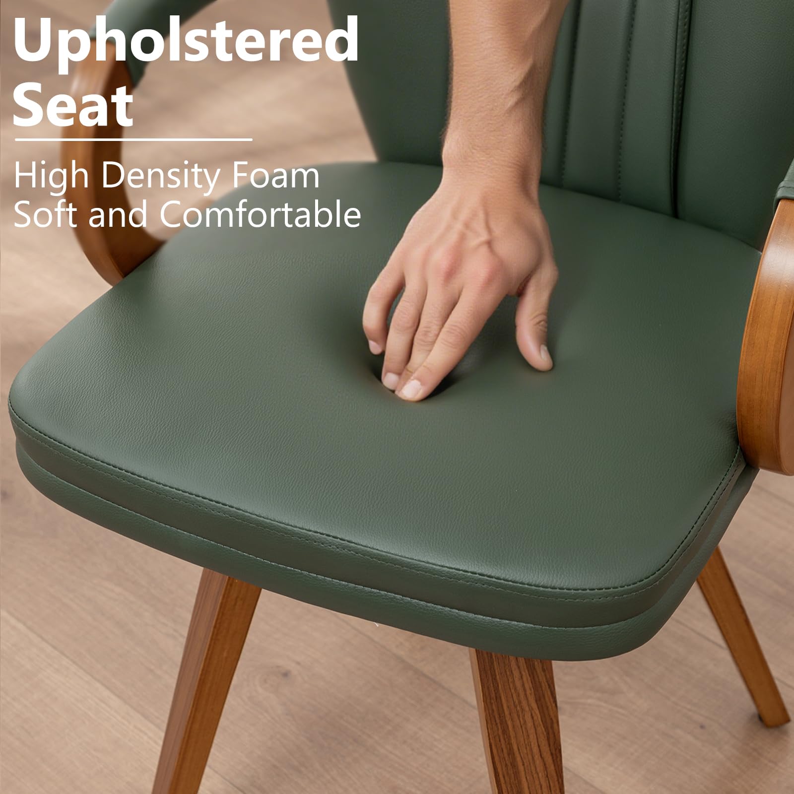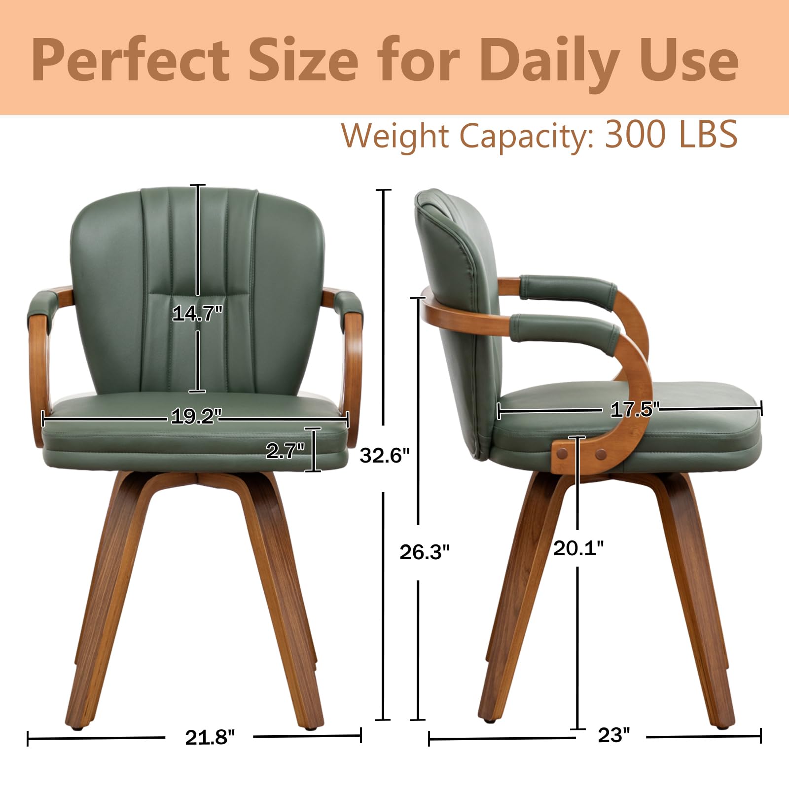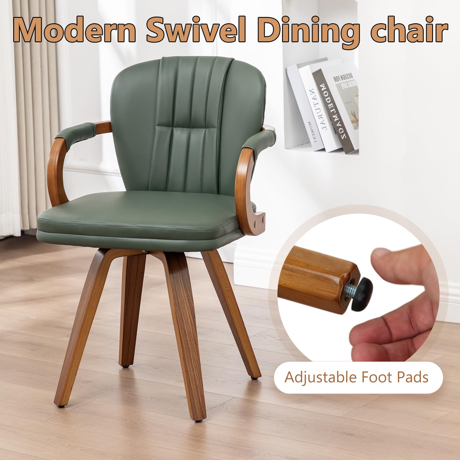 Swivel Dining Chairs Set of 4 - Green Leather Mid Century Modern